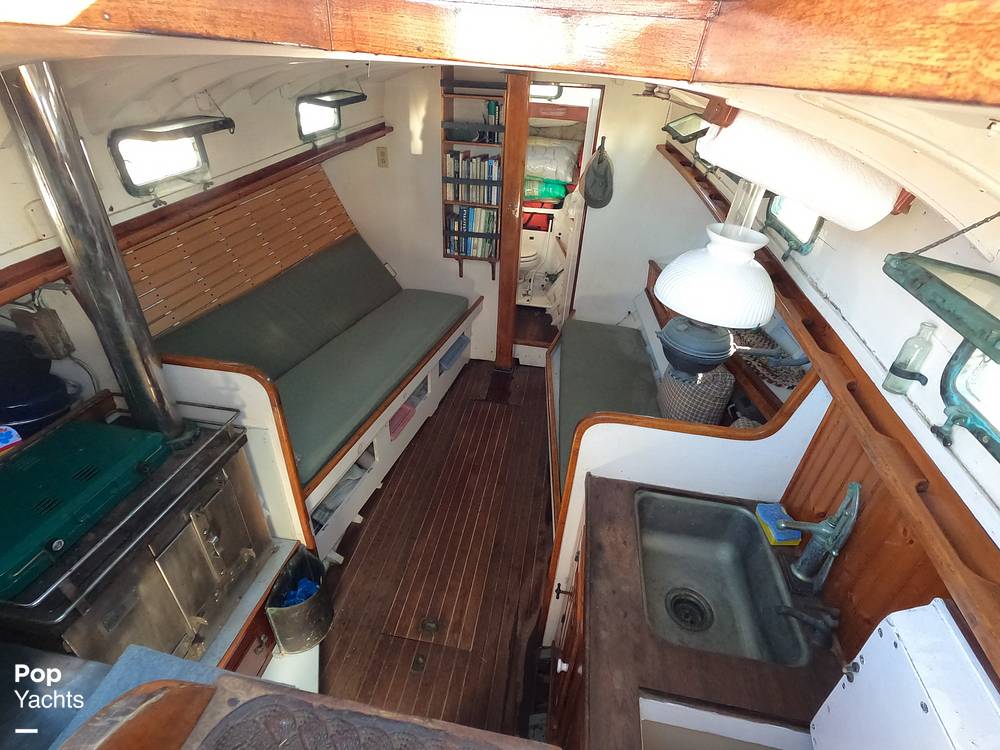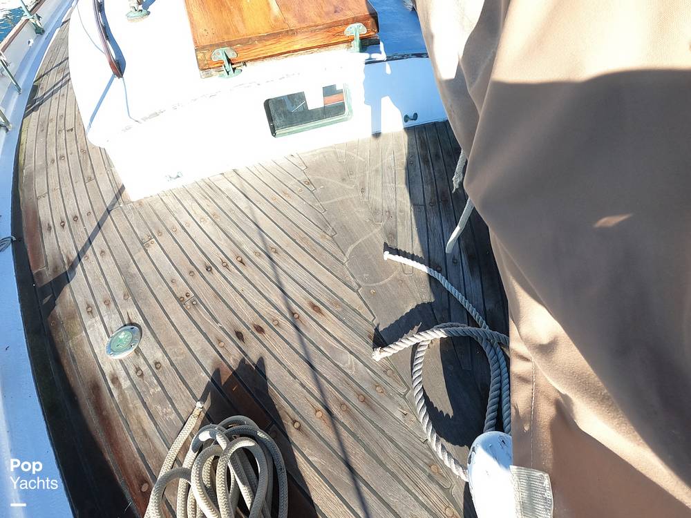 Per the seller, she's an easily sailed vessel, steady and sure-footed. The Decks are teak and recently had some planks, repaired or replaced and recaulked. The Plywood subdeck is said to show no signs of fatigue and do not leak.