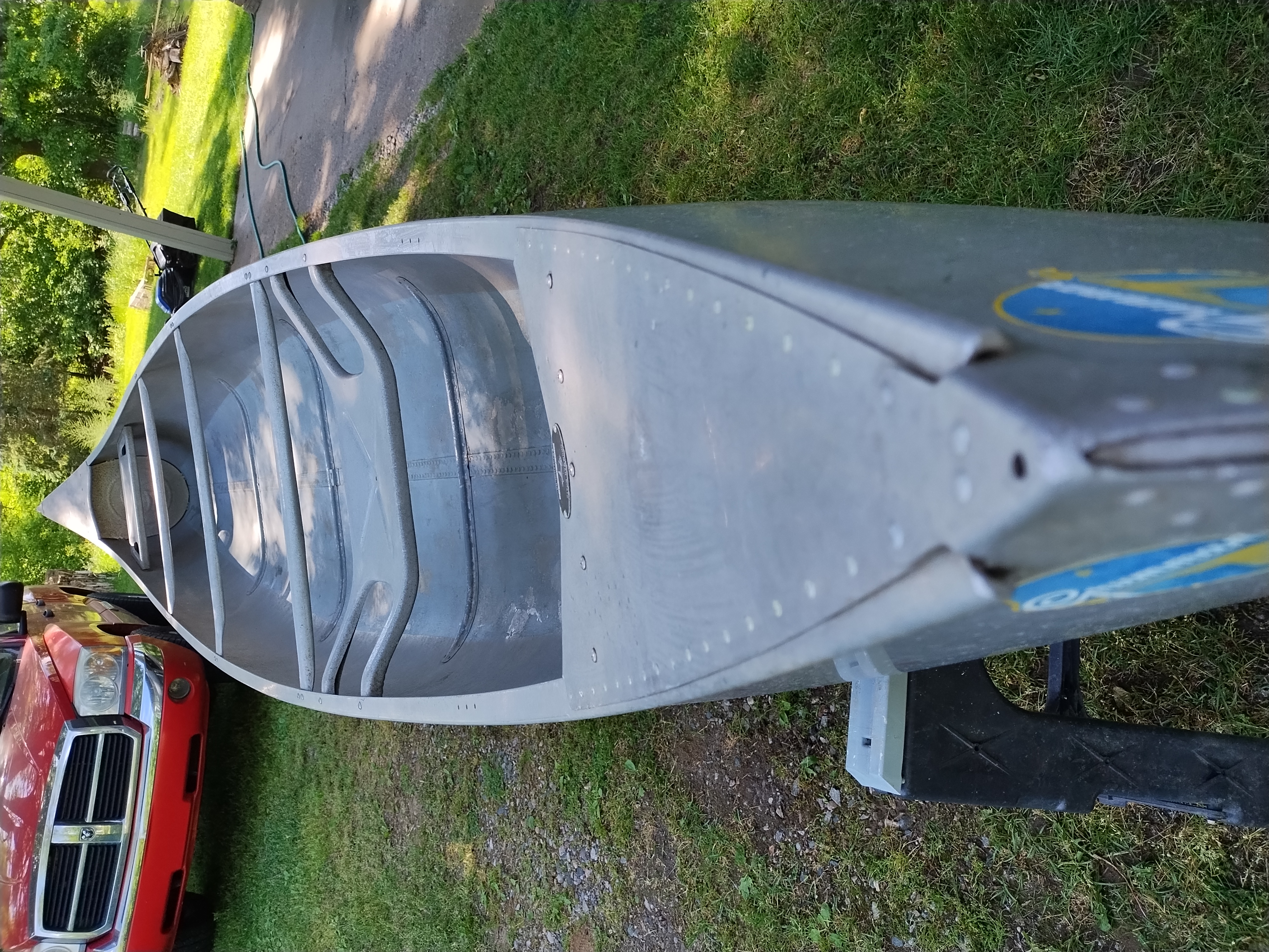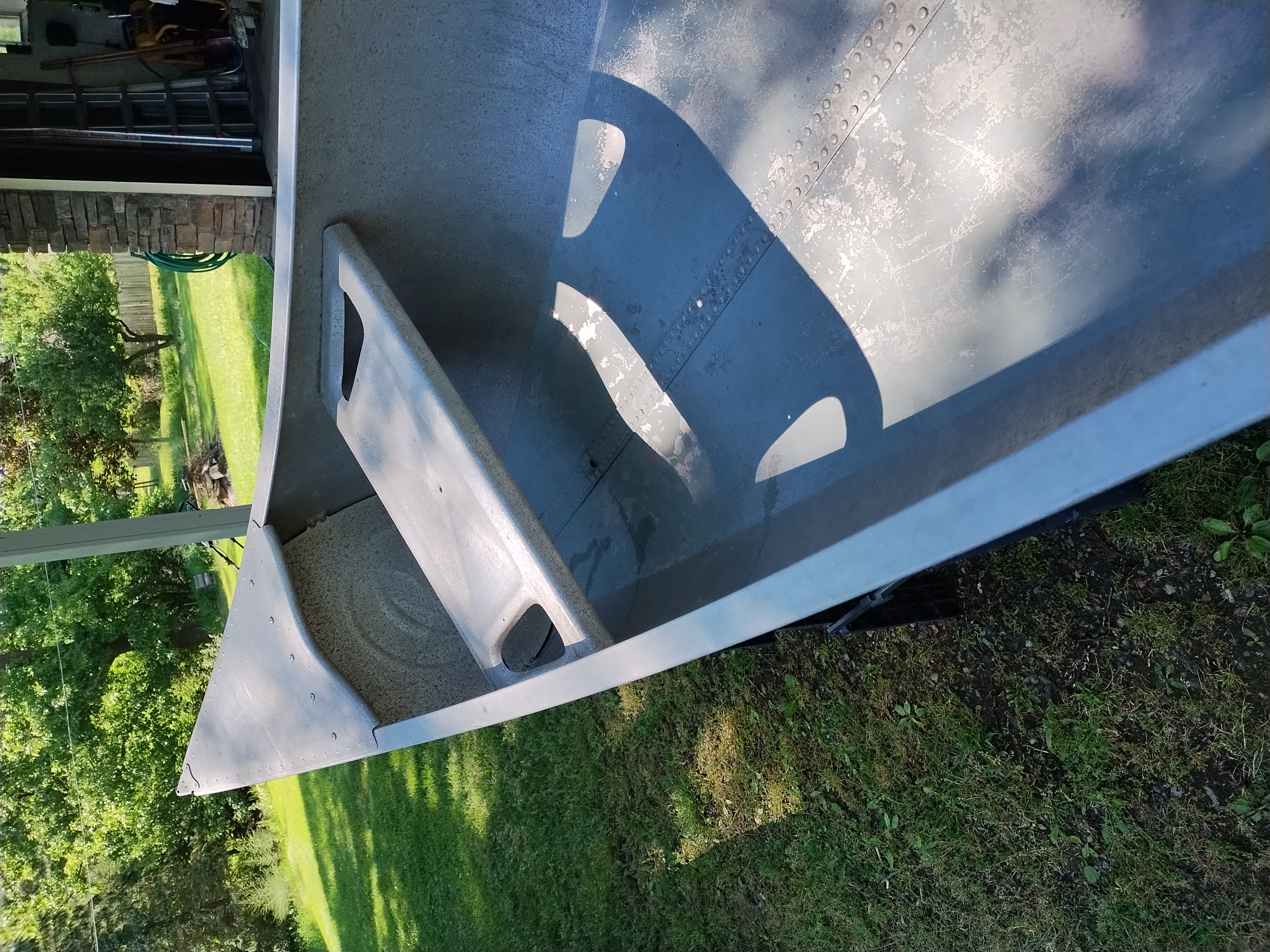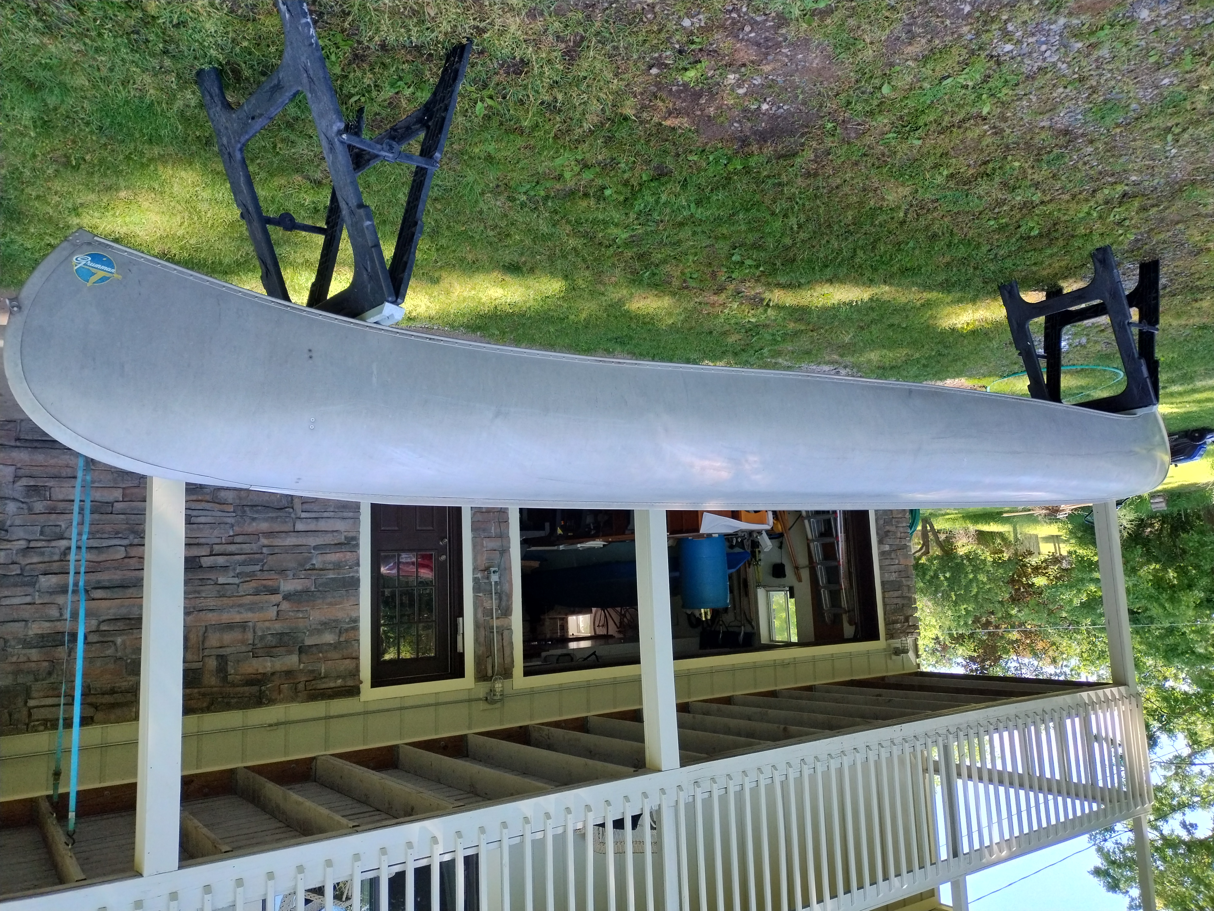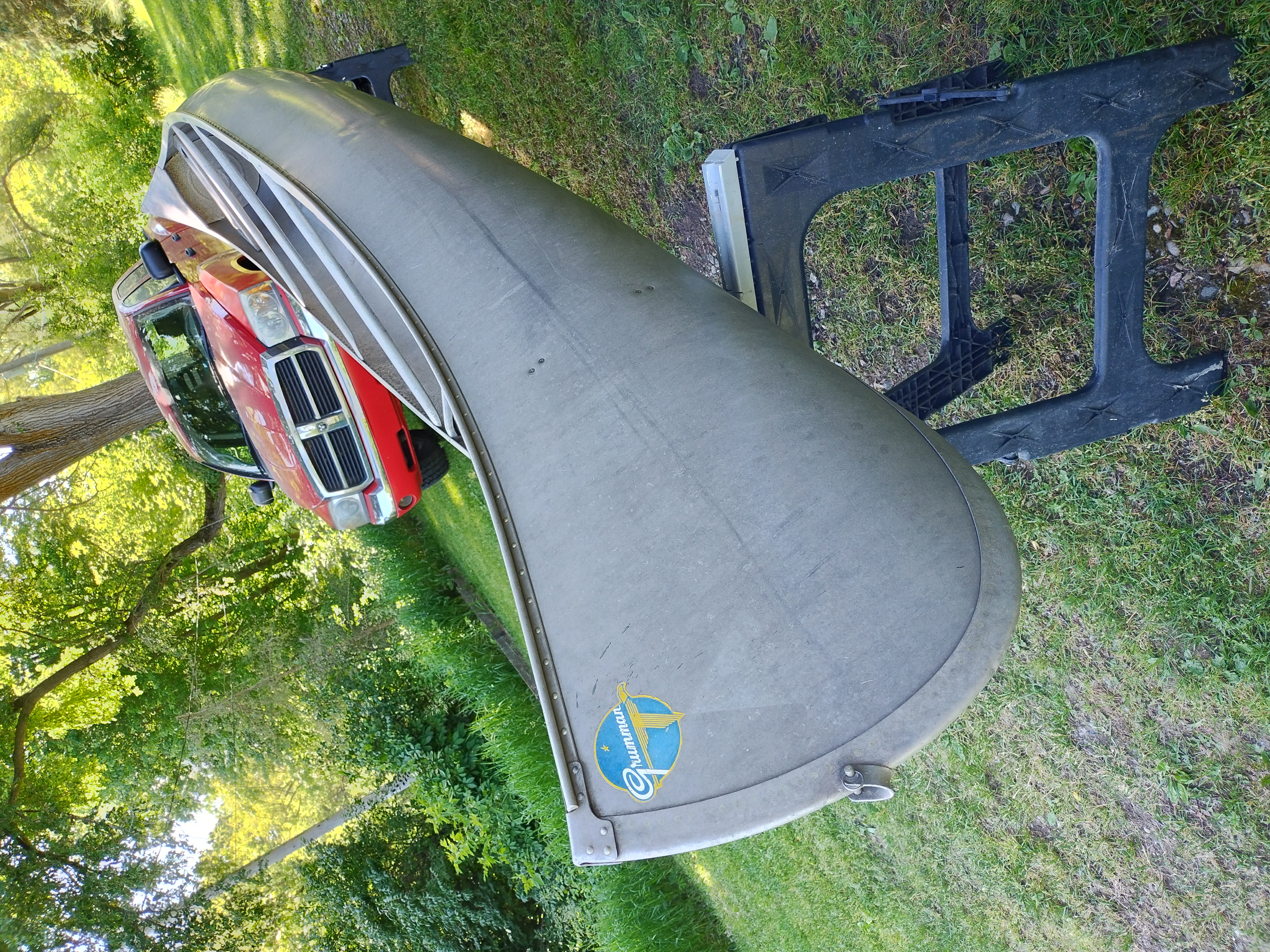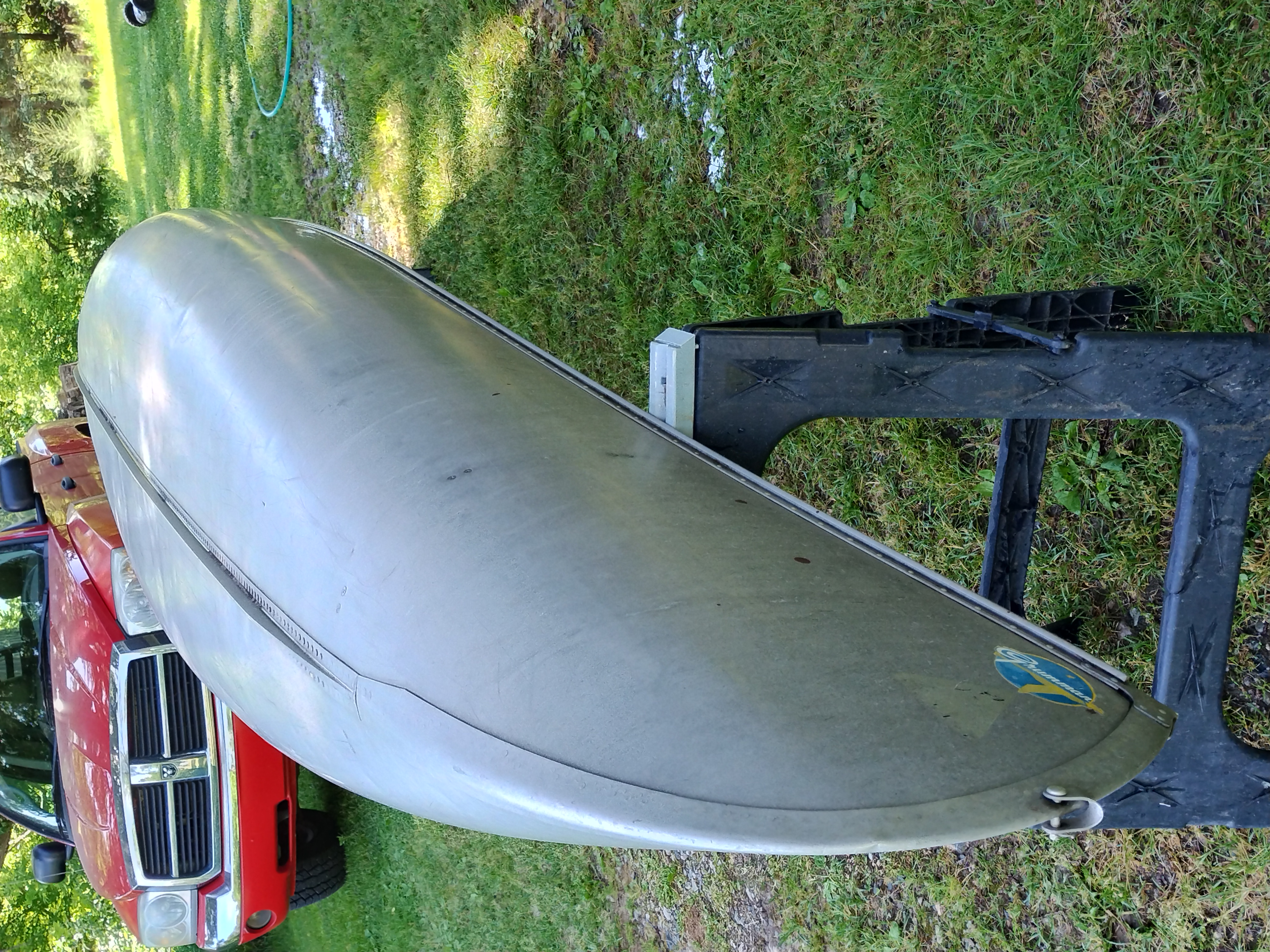 I'm not exactly sure of the year. My Dad bought it used in 1970 or 72. I think it is a 1965 model. It weighs about 75 pounds, and is in very good condition with only minor dents & scrapes, and no leaks. It is a Silverwolf model, but only remnants of the triangular shaped decal that once sat below the Grumman decal remain as seen in the pictures. It is equipped with the mounts for the sailboat kit. This canoe has provided years of enjoyment & fun and has many more to give.