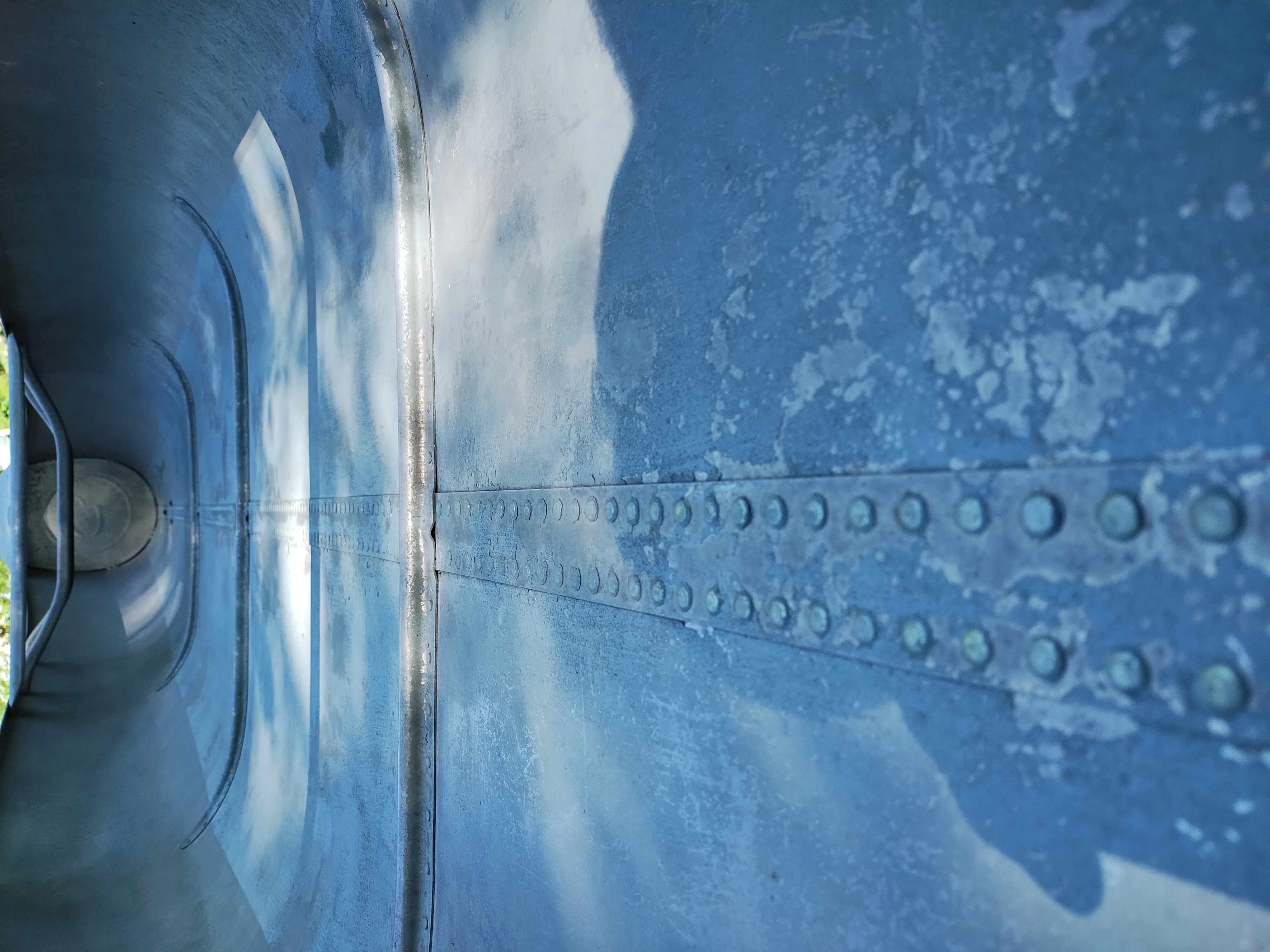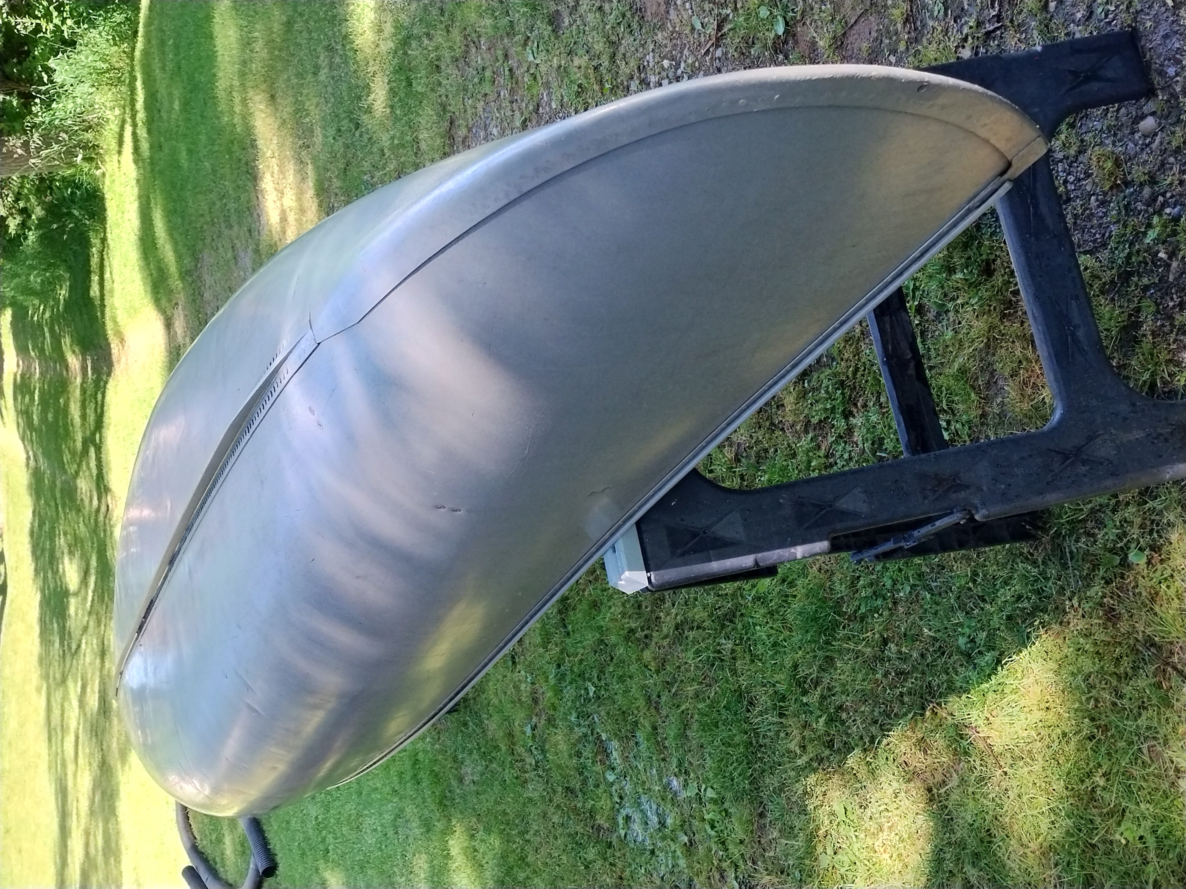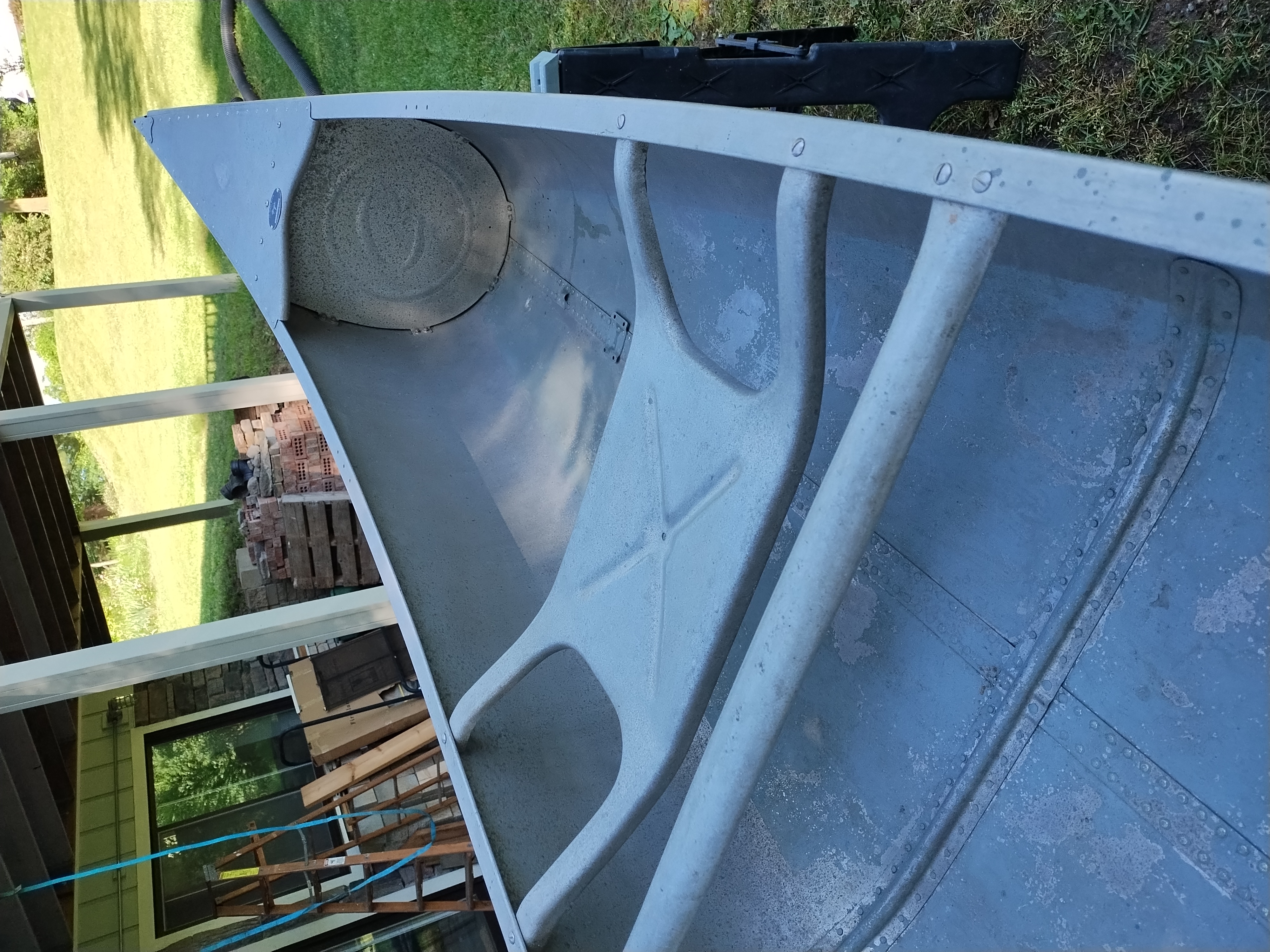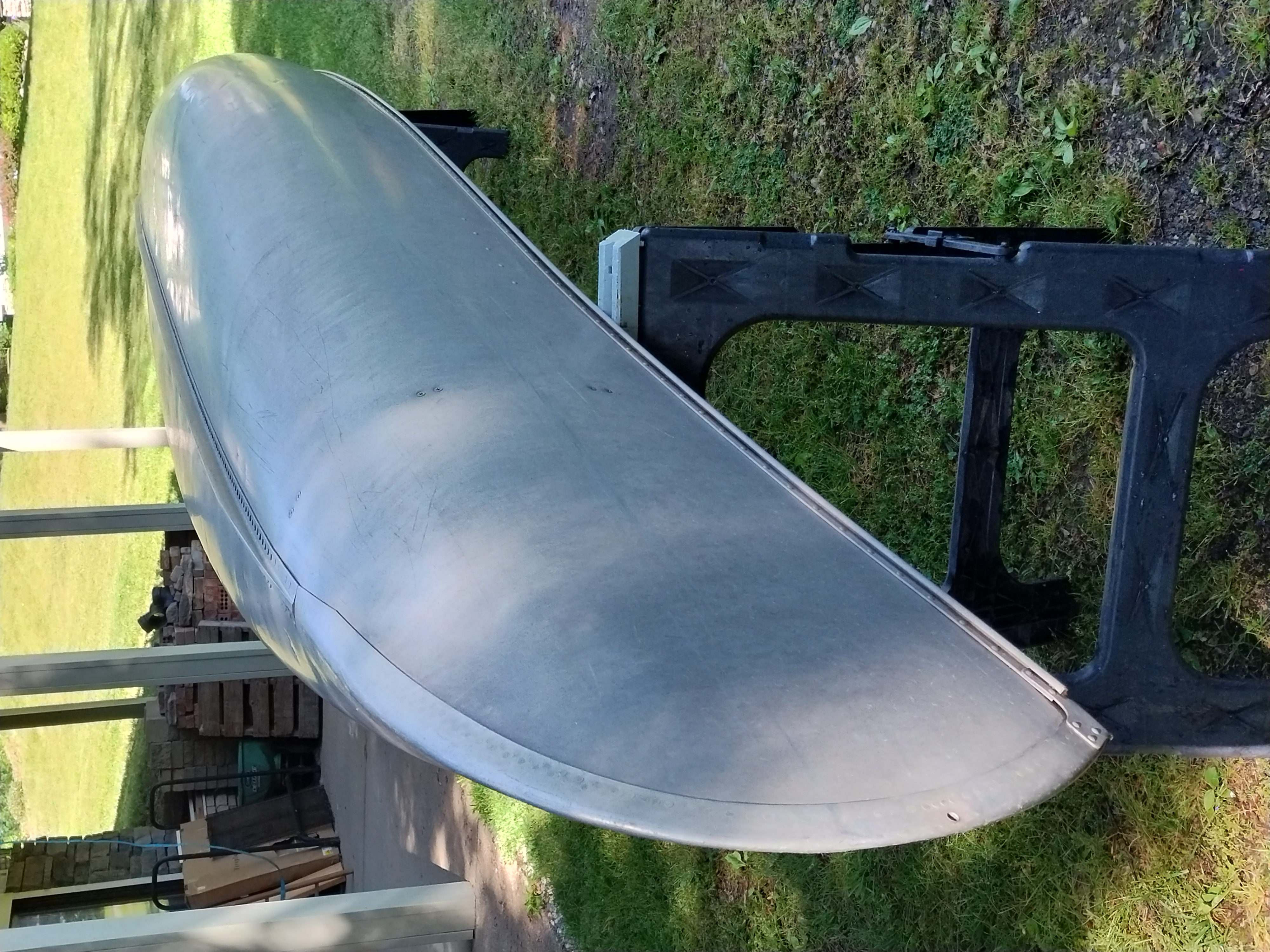 I'm not exactly sure of the year. My Dad bought it used in 1970 or 72. I think it is a 1965 model. It weighs about 75 pounds, and is in very good condition with only minor dents & scrapes, and no leaks. It is a Silverwolf model, but only remnants of the triangular shaped decal that once sat below the Grumman decal remain as seen in the pictures. It is equipped with the mounts for the sailboat kit. This canoe has provided years of enjoyment & fun and has many more to give.