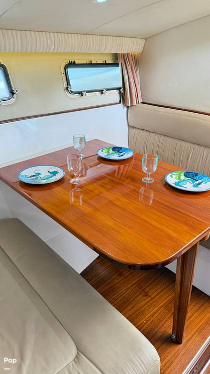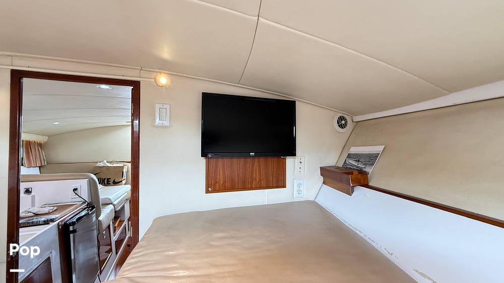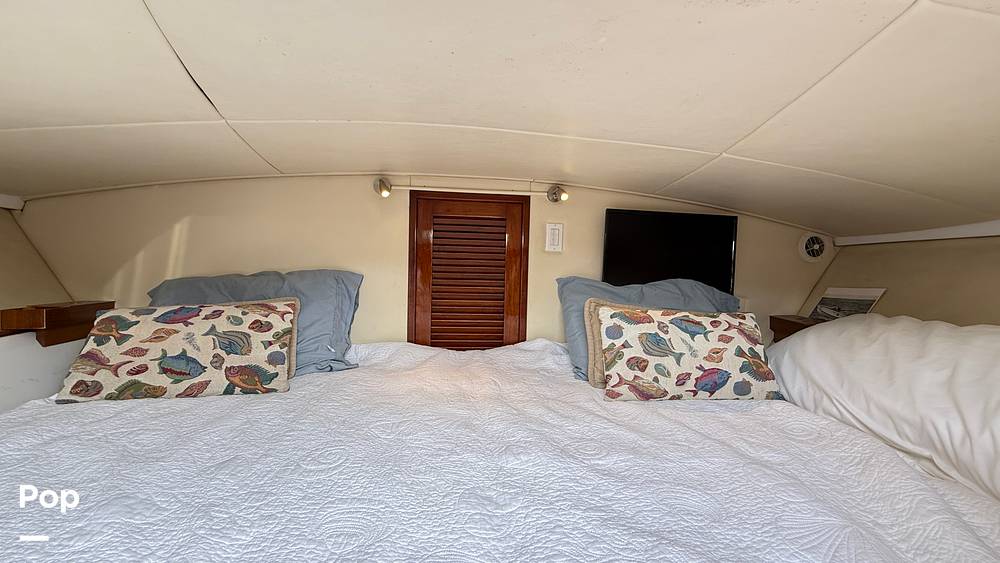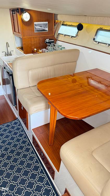 The boat features a classic design that has been admired for its sleek lines and craftsmanship. It was one of the first boats to offer sleeping quarters, a galley, and a full head in a power boat capable of speeds over 28 MPH.