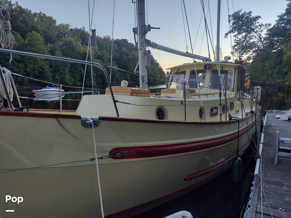 This stately ketch-rigged Motorsailer, modeled on the lines of a North Sea trawler, with a distinct emphasis on the motoring side of her job, has been lovingly maintained by her current owner.