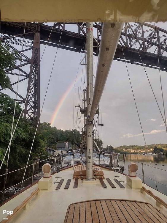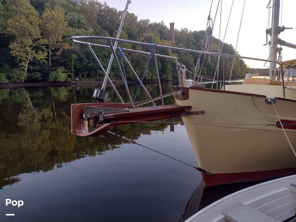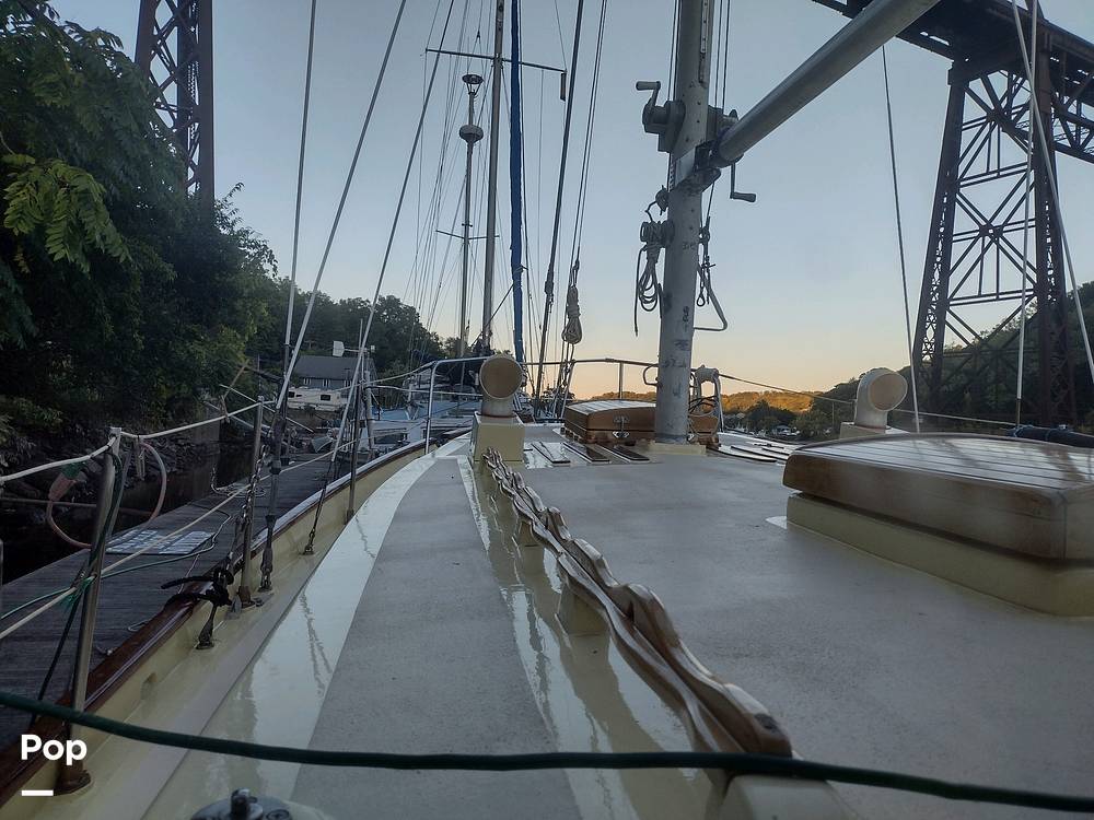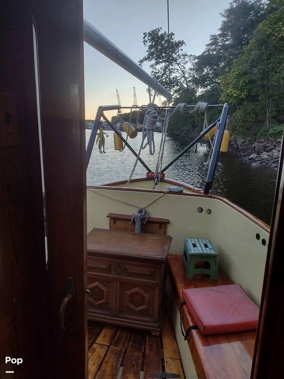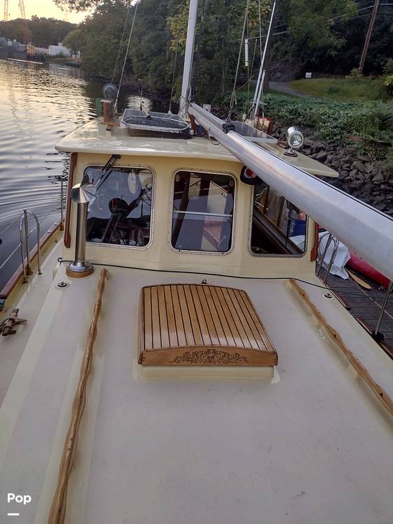 Newport Dickinson diesel furnace for the cooler days on your voyage and per the seller, all exterior woodwork covered with multiple coats of epoxy followed by multiple coats of varnish and Kiwi Grip non-skid surface applied to topside, giving her many, many more years on the water