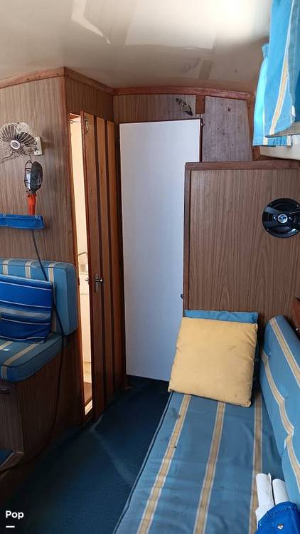 Auxiliary power is provided by a Perkins 4.108 diesel engine, a trusted and widely used marine diesel, with the seller reporting under 1,600 hours of use. Navigation and utility features include a Garmin Striker depth indicator and an Ideal anchor windlass, supporting easier operation and anchoring.