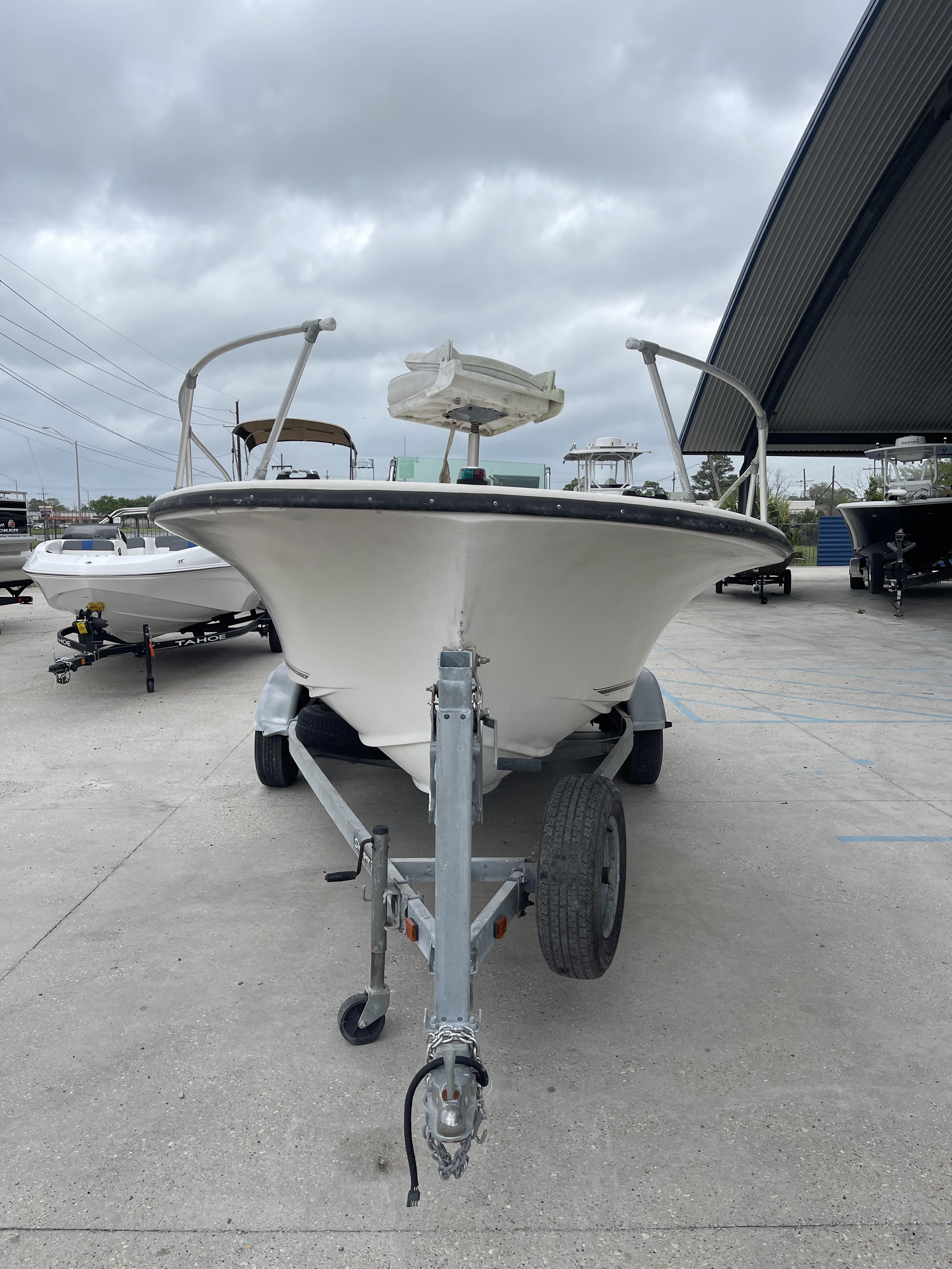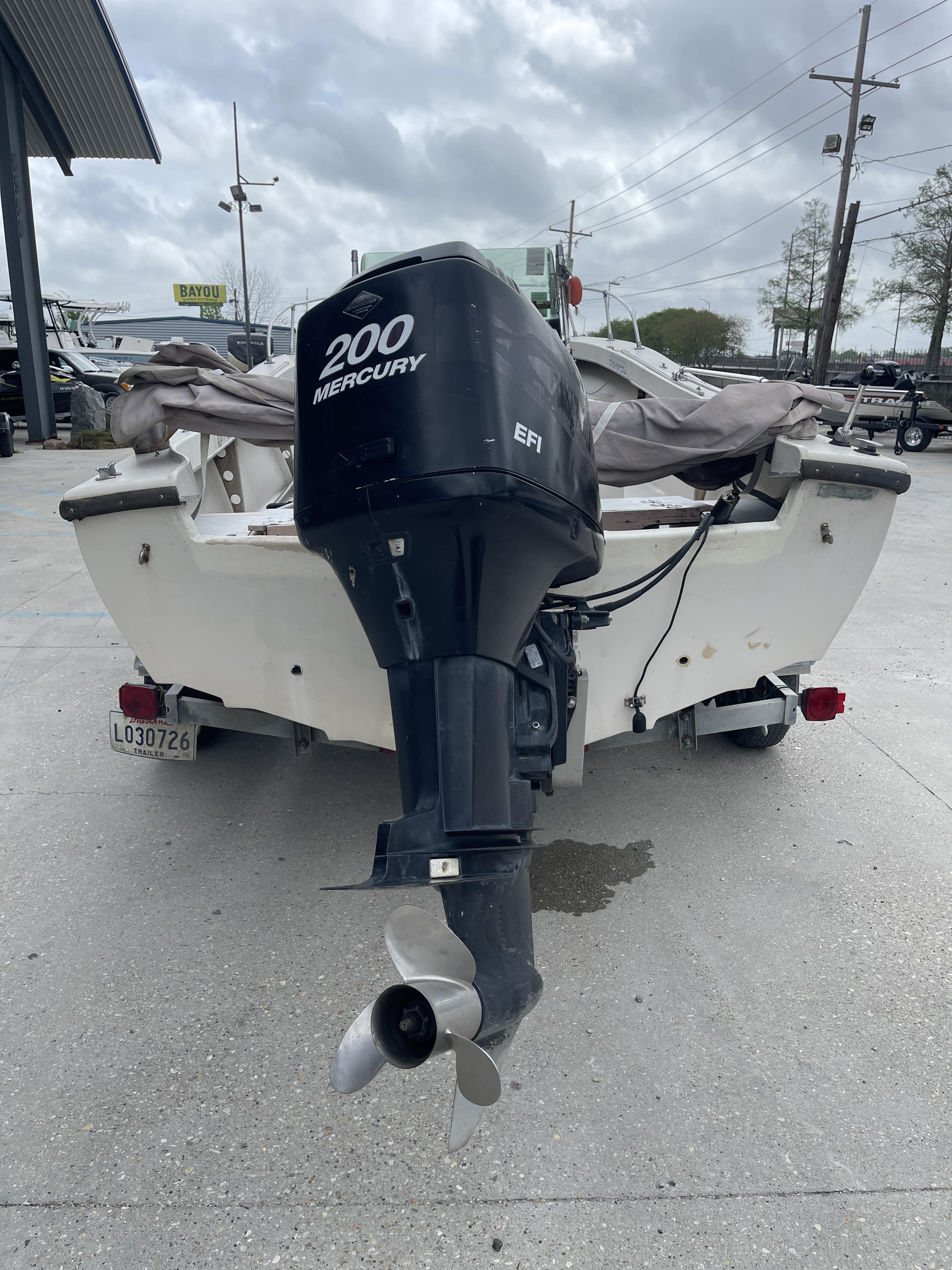 The package includes an aluminum tandem axle trailer with new front bunks and jack. The trailer is lightweight, eliminating the need for a title (sold with a bill of sale).