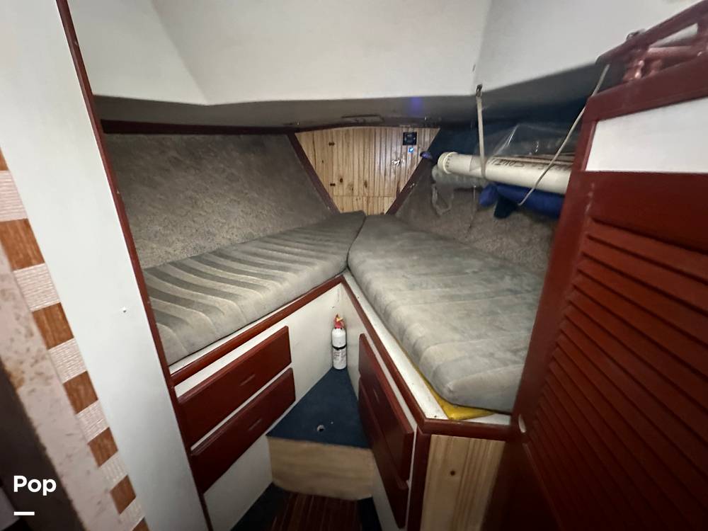 The boat is set up for comfort, with the mid-ship boasting a dinette, settee, and a nice galley. The galley is also mid-ship and has countertops, a gimbaled oven with a stovetop, a stainless sink, a watermaker that has never been used, and a 12-volt refrigerator/freezer.