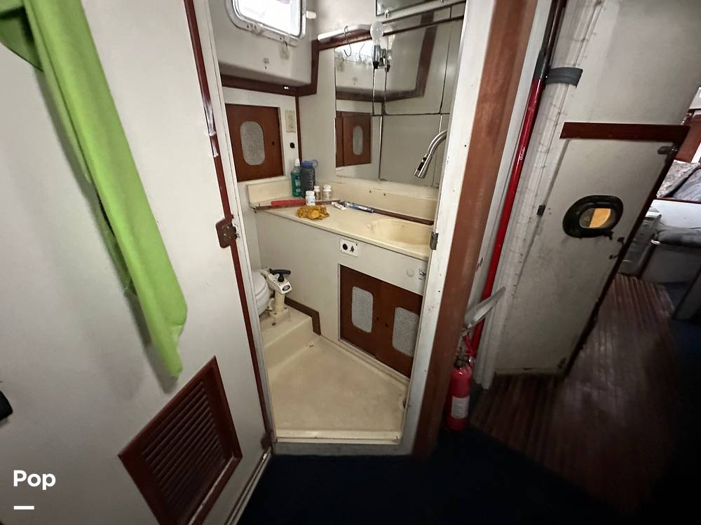 This ketch has two staterooms, the forward V-berth with a head, and the aft stateroom has a berth with a head and shower. There is ample storage throughout this vessel.