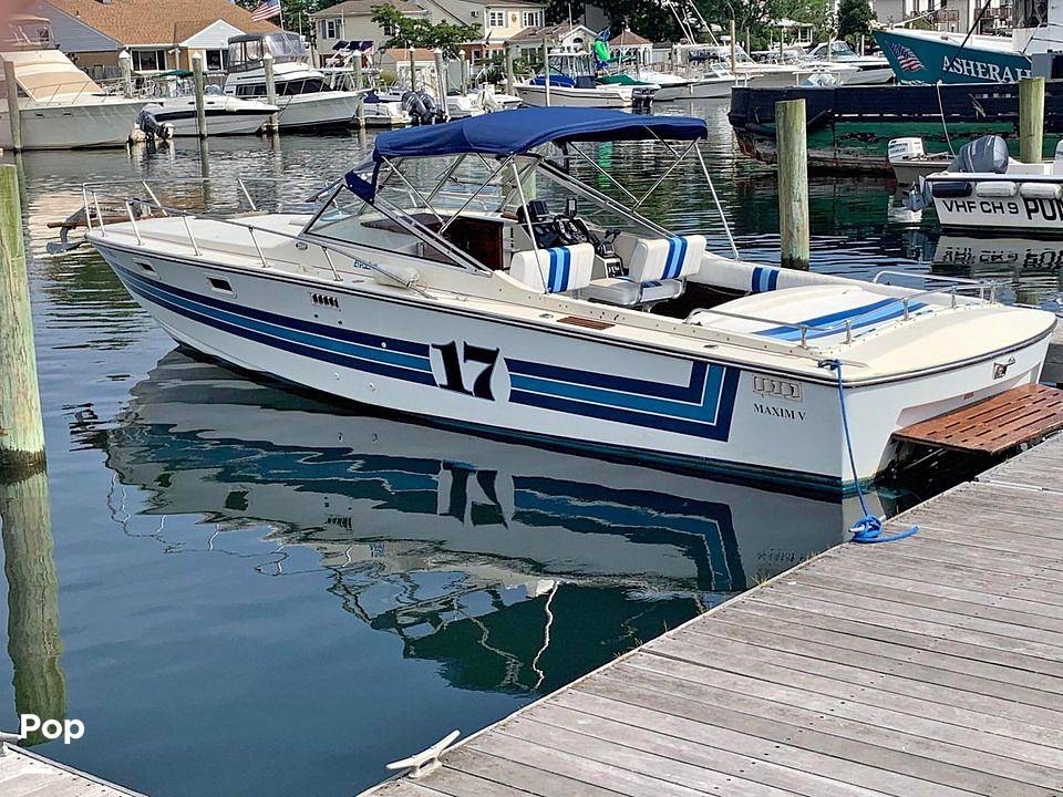 1977 Apollo 31 Maxim V Sportcruiser. The twin engines are Mercruiser 5.7L with 250 HP each and Bravo One outdrives.