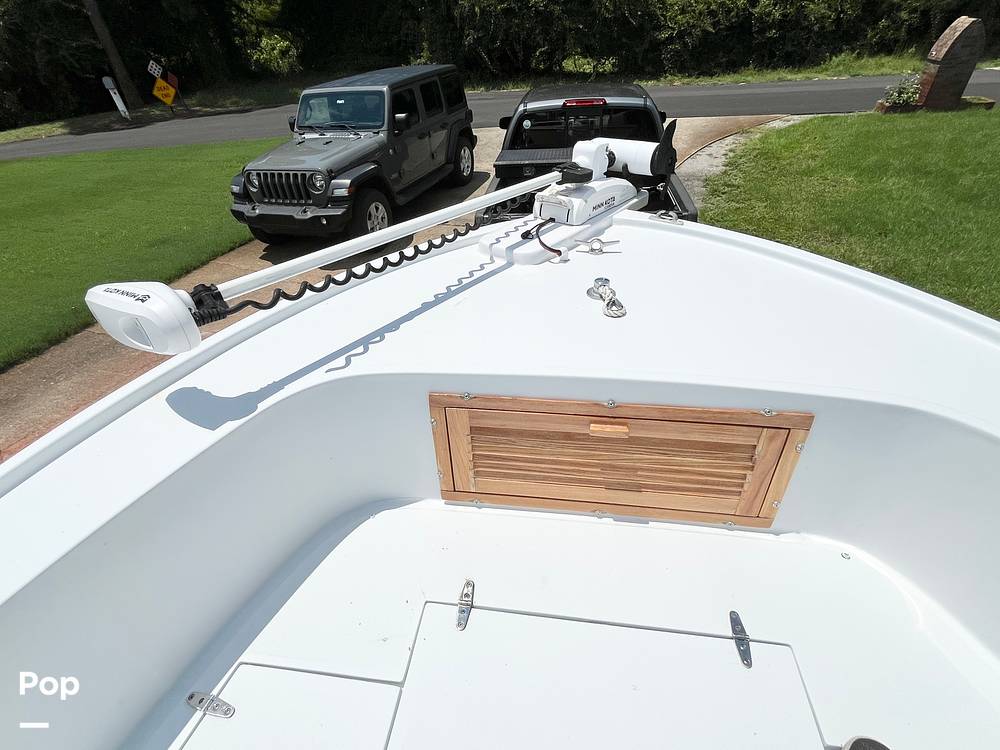 The Minn Kota 36V trolling motor has i-Pilot capabilities and its own charger. Two house batteries are stored in the console with a second charger.