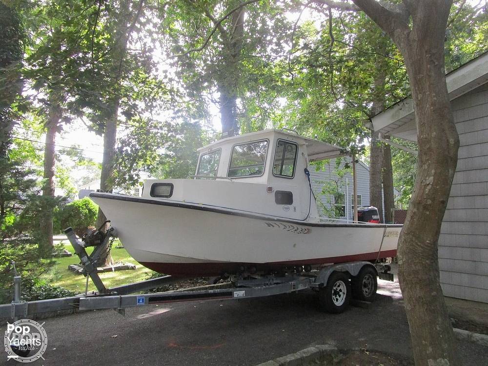 Great old-school fishing, clam, and or lobster boat, or she can even be used as a great day boat. This semi-enclosed pilothouse boat is ideal to be used in a commercial setting as it is a no-nonsense commercial workboat design.