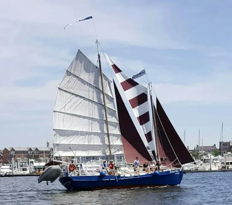 A true head-turner, Summer Wind is a classic Tom Colvin Gazelle schooner with a unique junk rig, built tough with 1/4" steel for serious cruising. Designed for adventure, she’s been a trusted tour boat for 16 years, logging over 75,000 miles and carrying 25,000+ passengers. A regular in the Great Chesapeake Bay Schooner Race, she’s proven her seaworthiness time and again.
