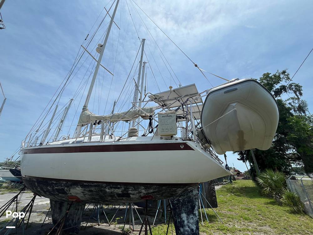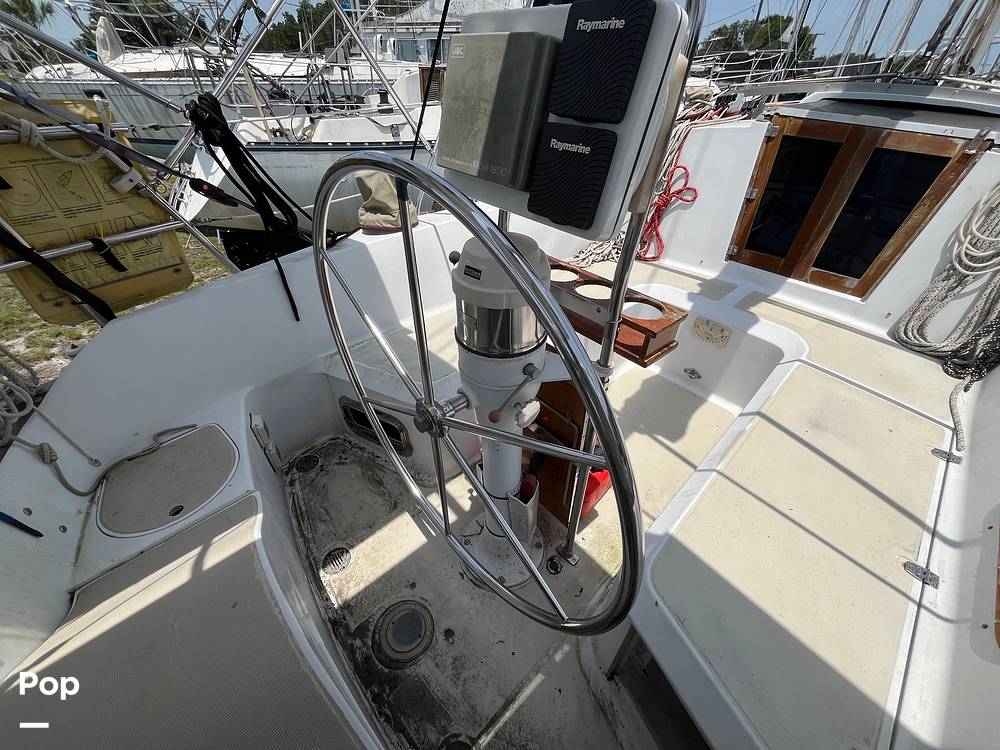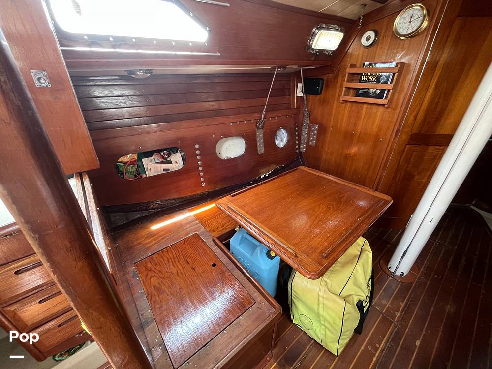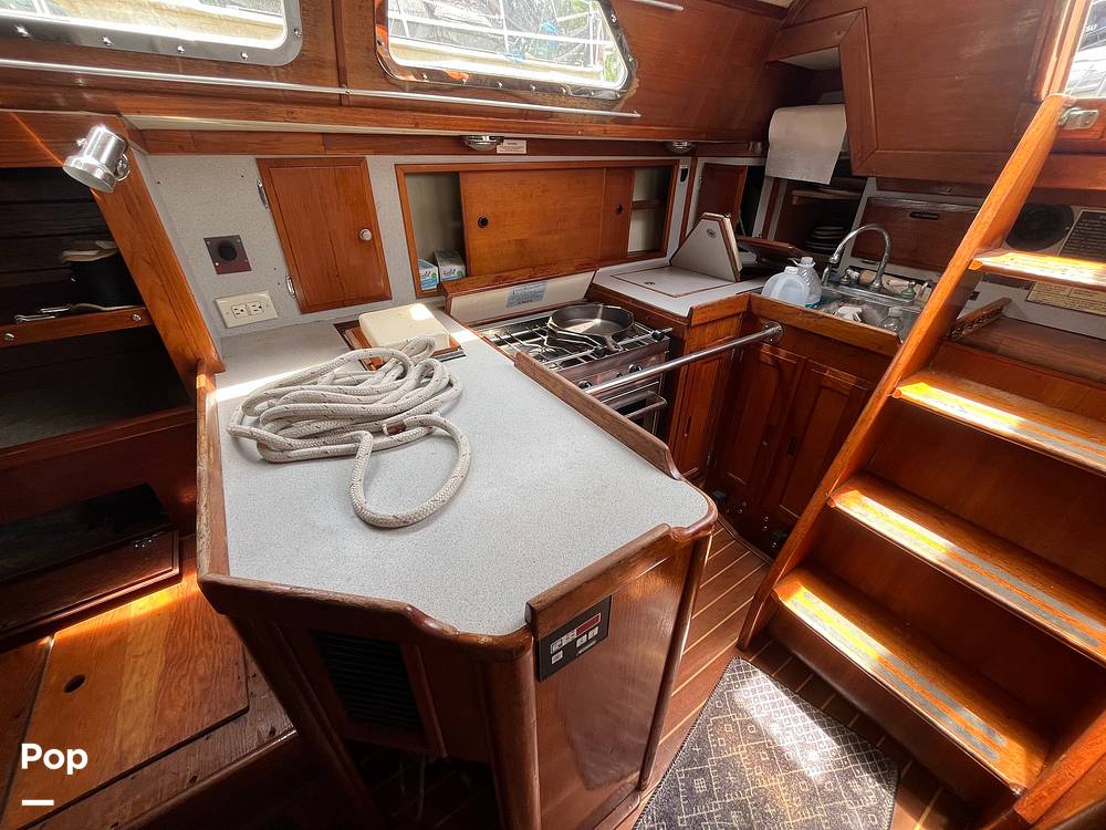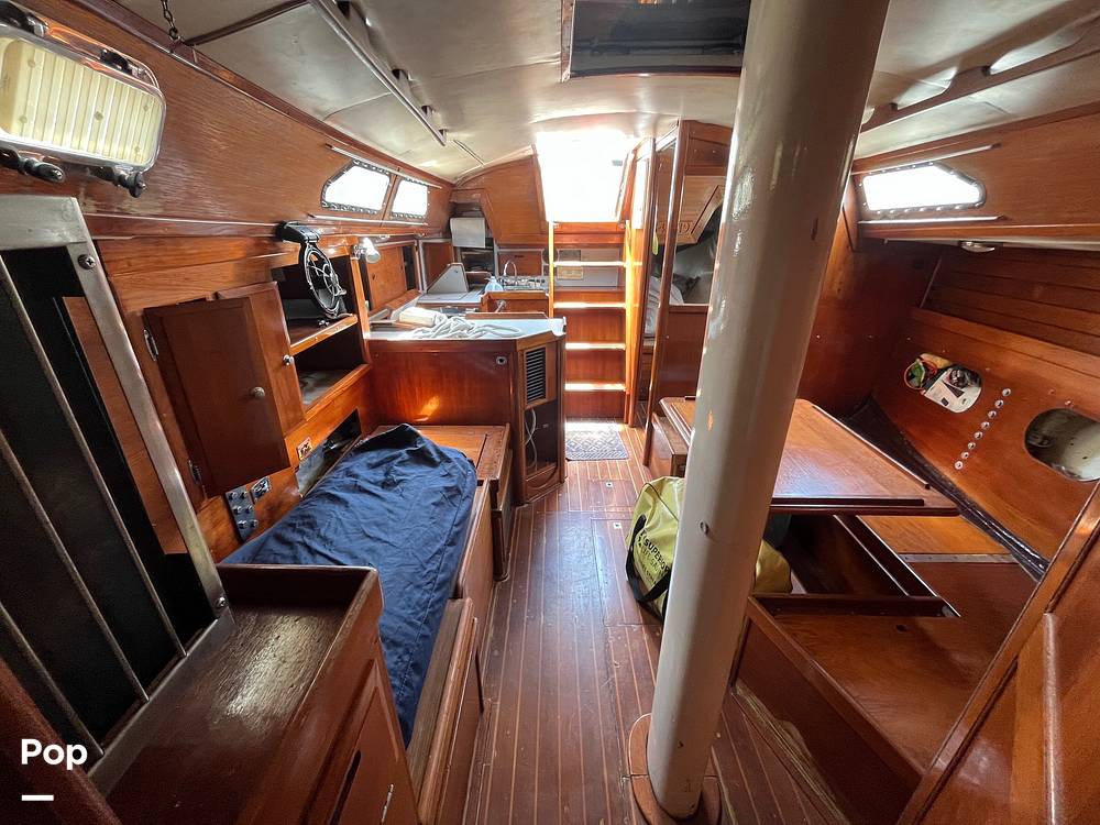 This particular vessel is in good condition and ready to sail. At just under 38 feet in length with a 12-foot beam and a 60" shoal-draft keel, she offers a stable yet responsive ride, ideal for everything from weekend getaways to spirited club racing. Her graceful lines and strong fiberglass hull are complemented by a masthead sloop rig with aluminum spar and stainless standing rigging, giving her both the look and function of a capable offshore boat.