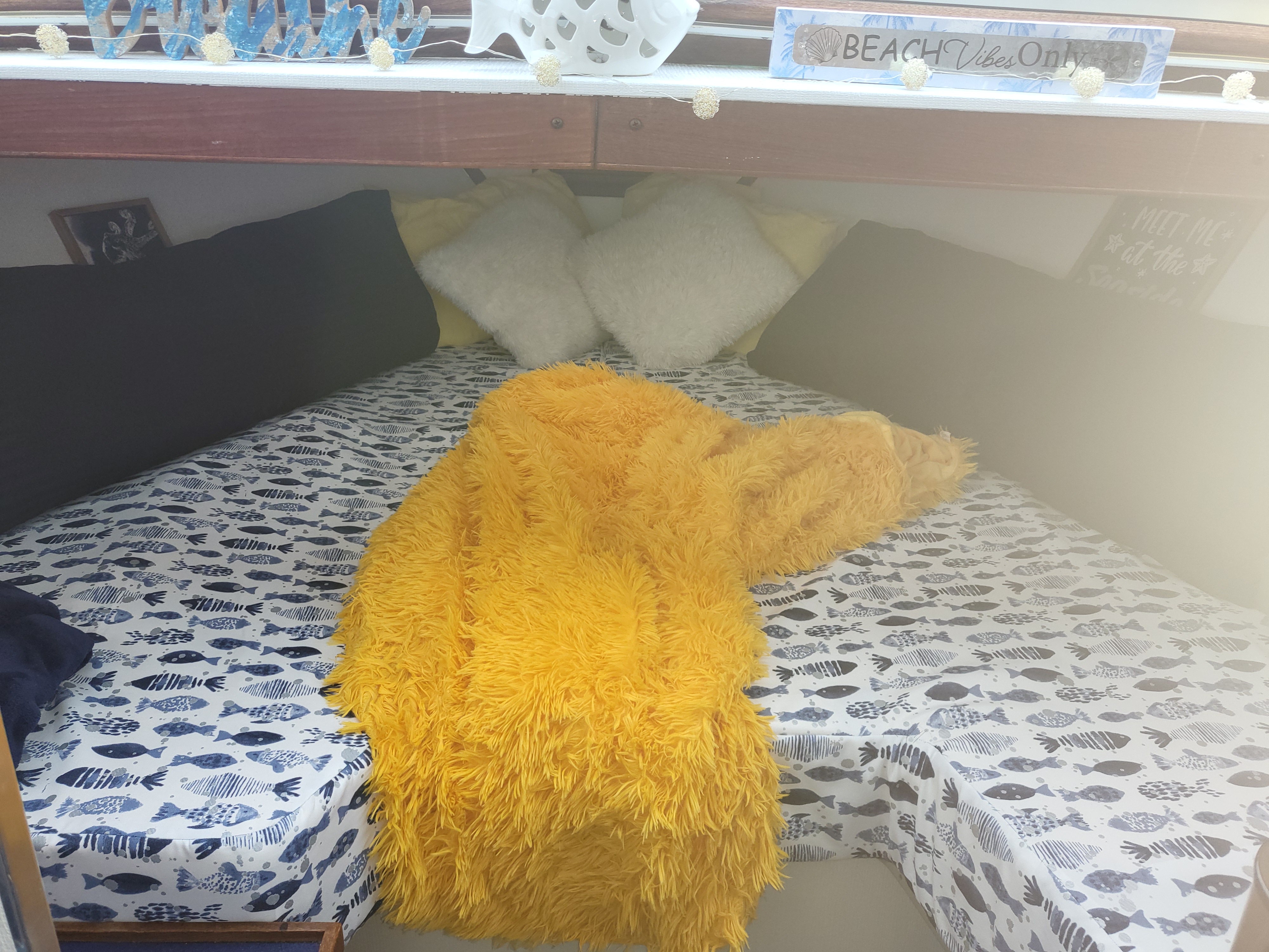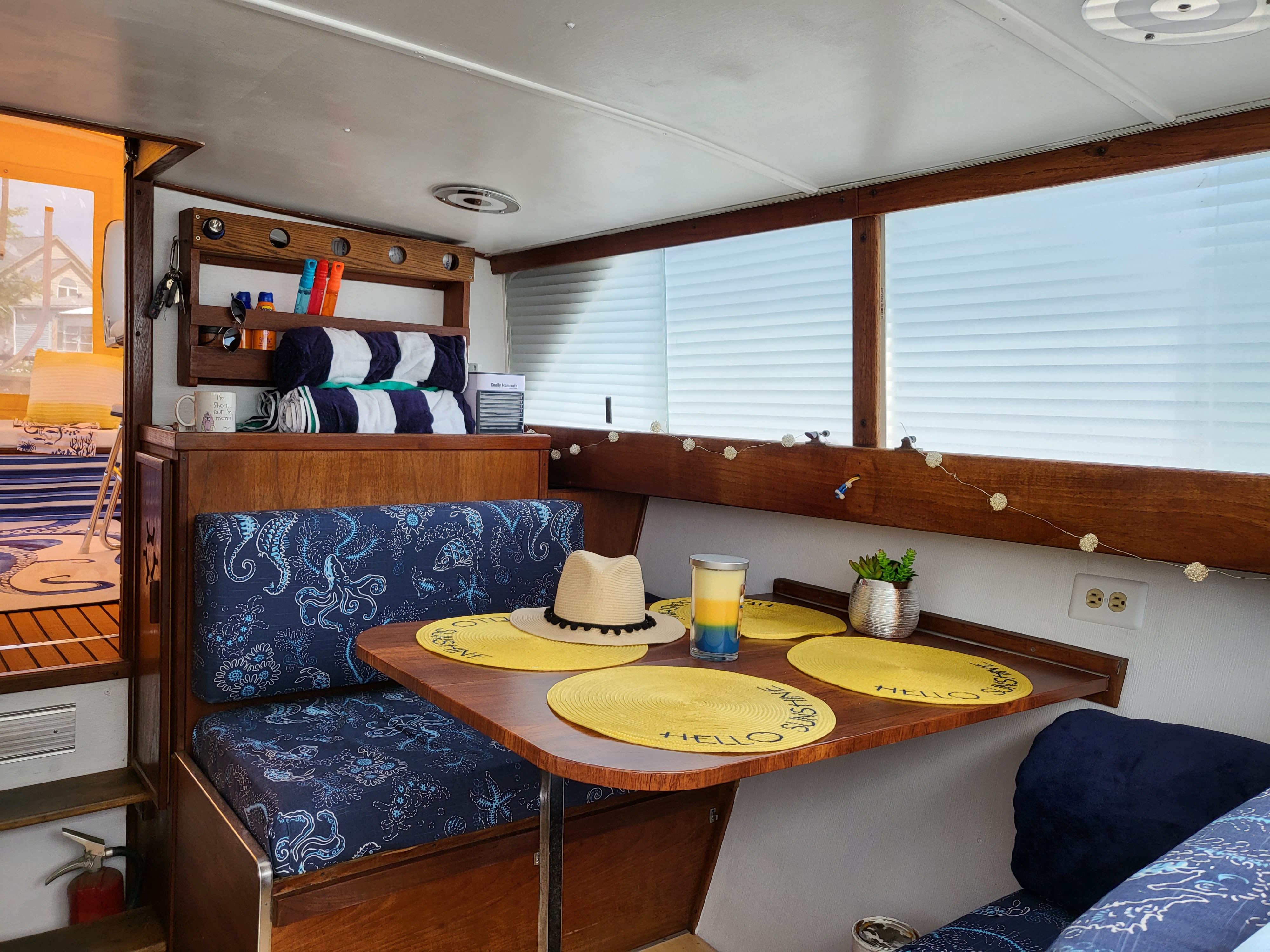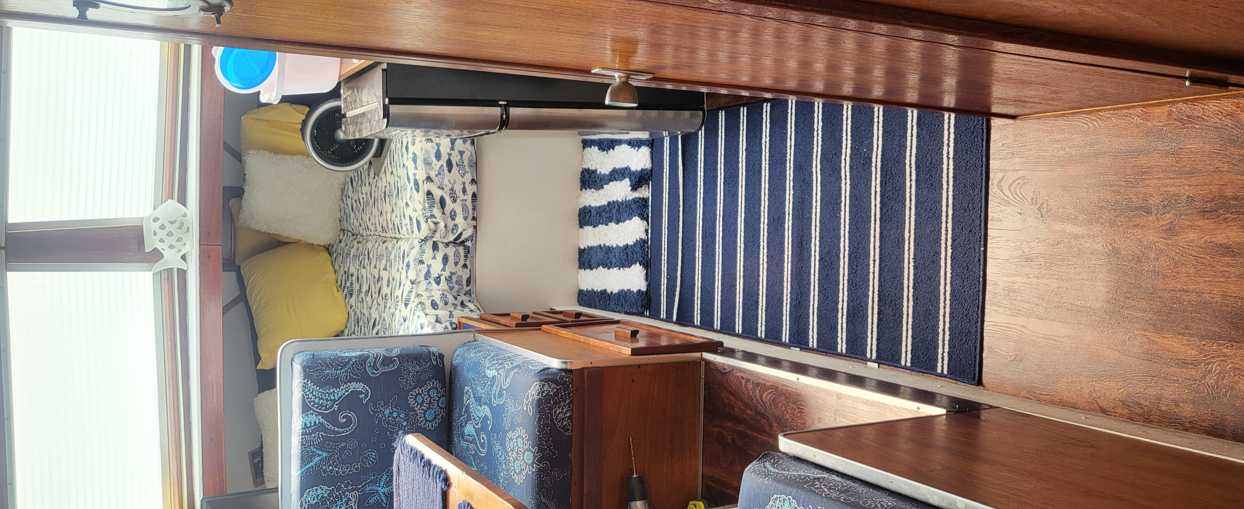 Accommodations for four below the forward V-berth and convertible dinette table that can sleep 2.