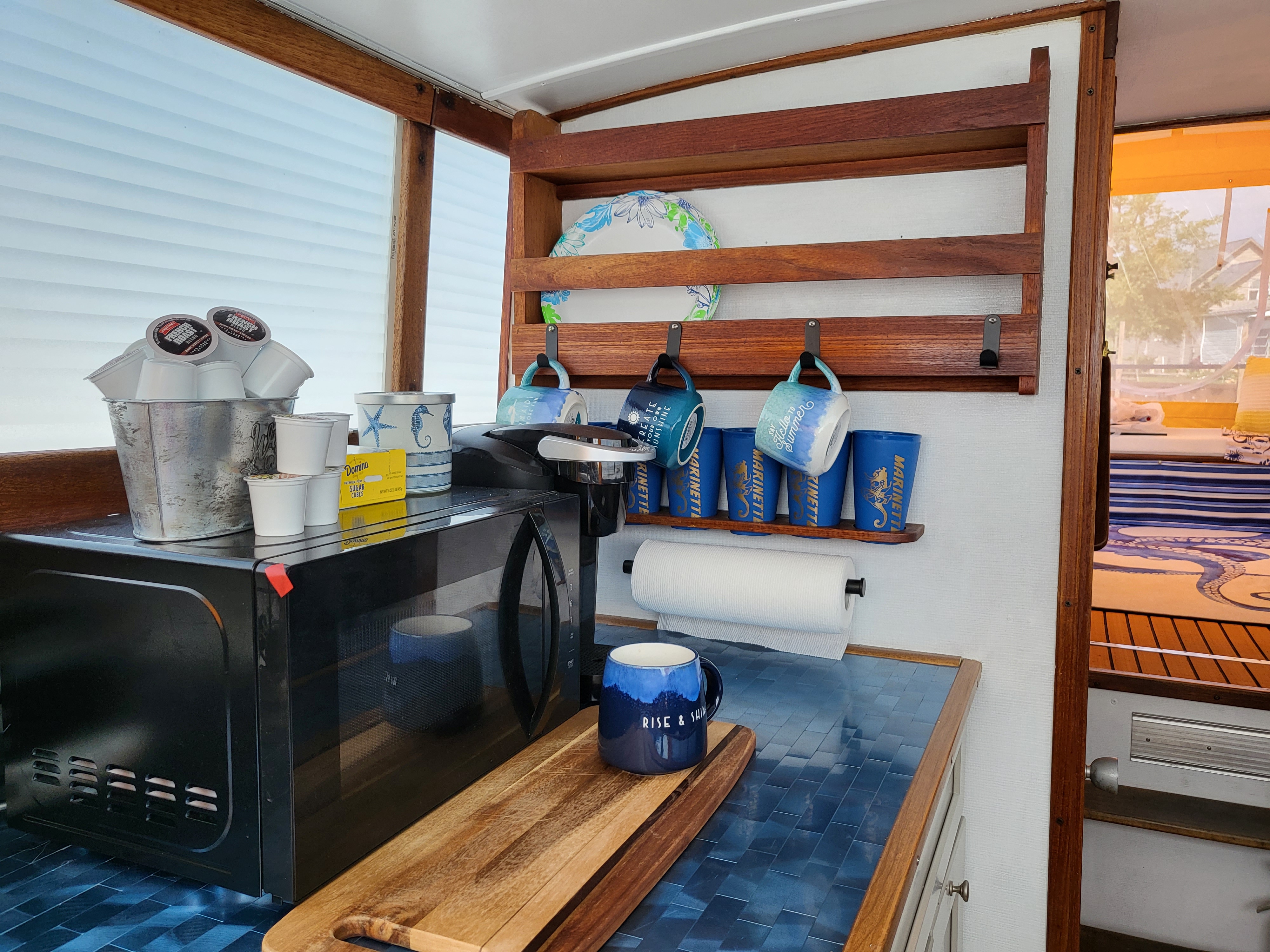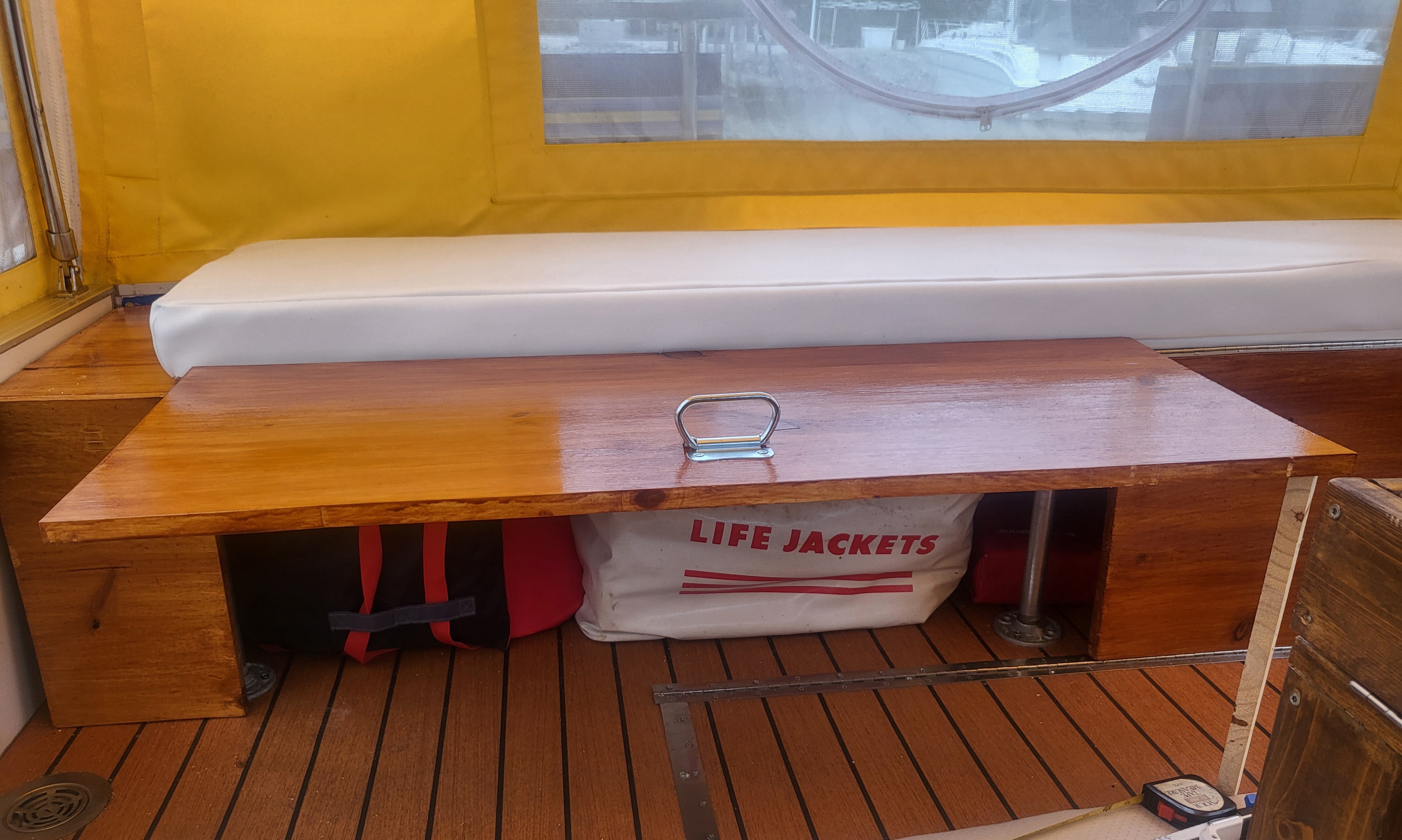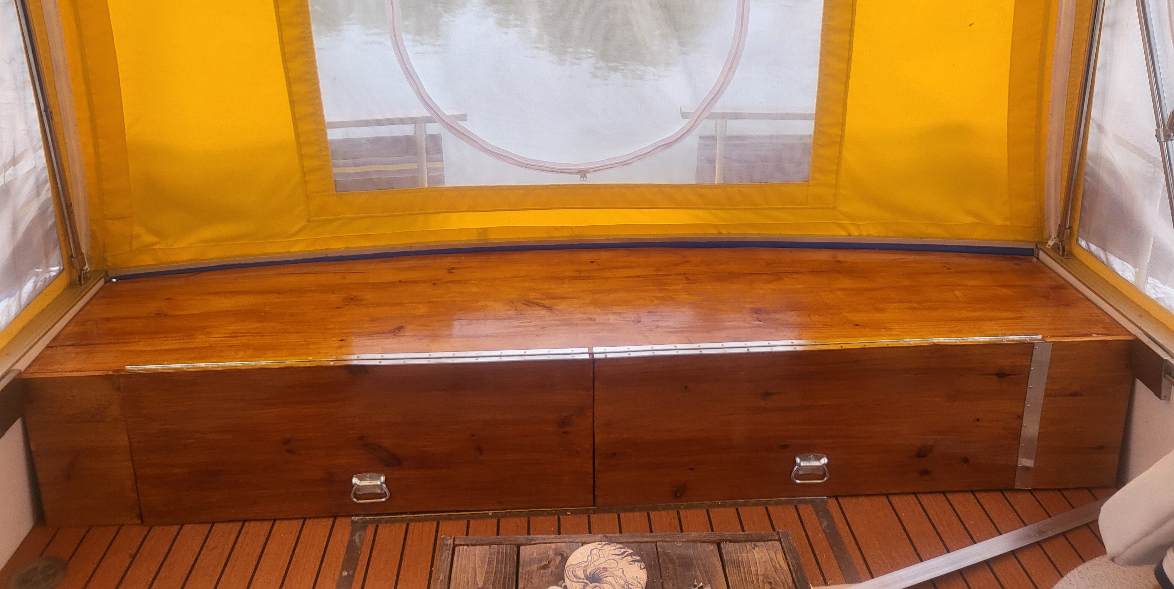 Accommodations for four below the forward V-berth and convertible dinette table that can sleep 2.