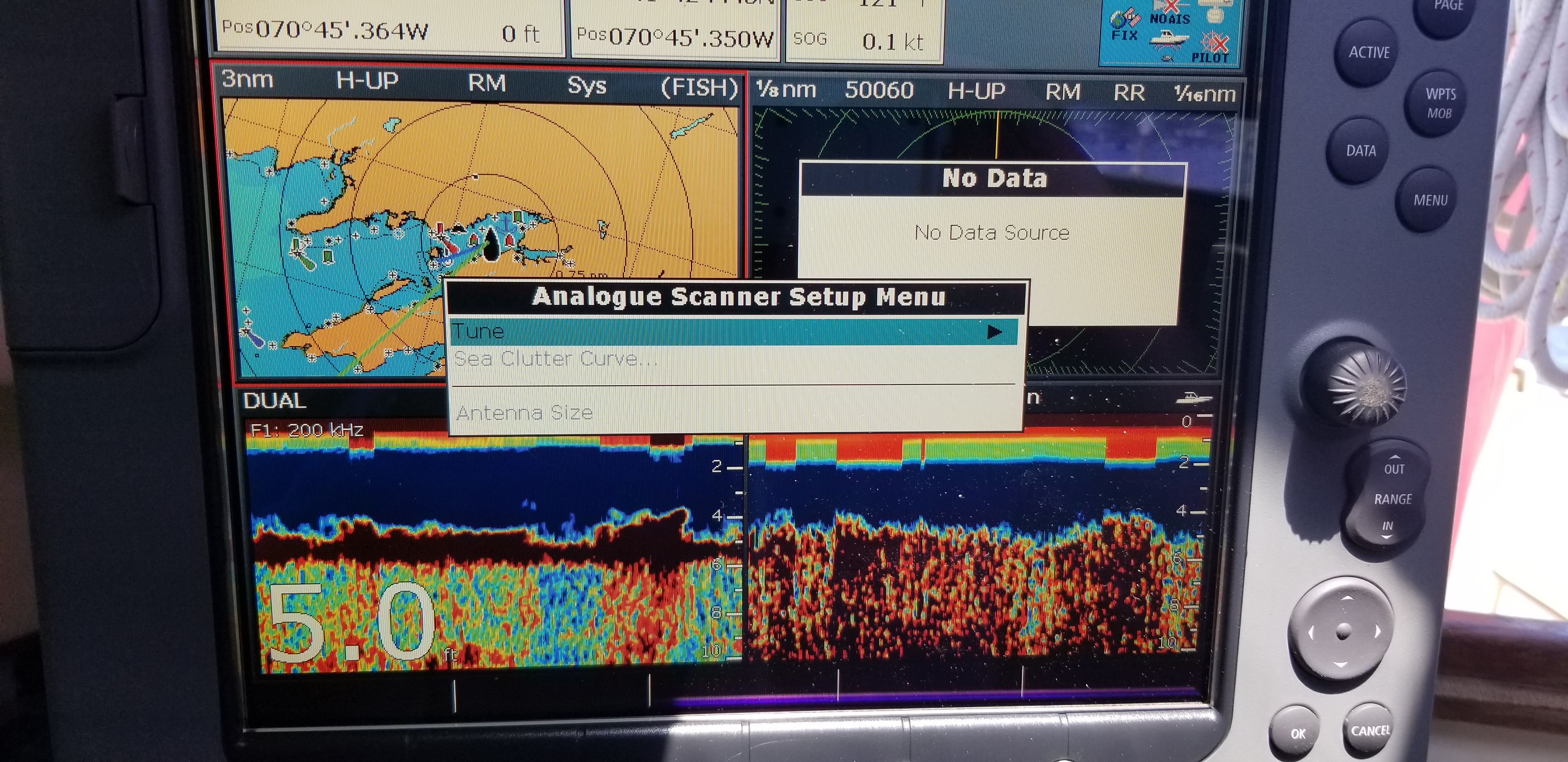 I installed a 12" Ray-marine E120 multi screen (so now have 2 GPS's) with a 24 mile radar, AIS enabled, a DM300 top of the line Sonar (can peer down 2000 feet, new bow lights and stern light, new blower motor and Solar vent