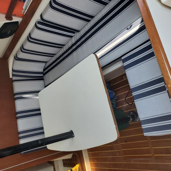 I should also mention (I forgot) that all my cushions are made with "Marine Grade" foam, blue color vs the cheaper brown production boat foam. It is 4 times more expensive as its mildew proof. All foam cushions sealed with plastic covering to protect from spills and Sunbrella water resistant covering, all S/S staples used where wood backing is used, high grade vinyl heavy duty zippers and high grade heavy duty Velcro. This adds thousands in value!