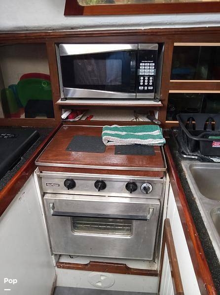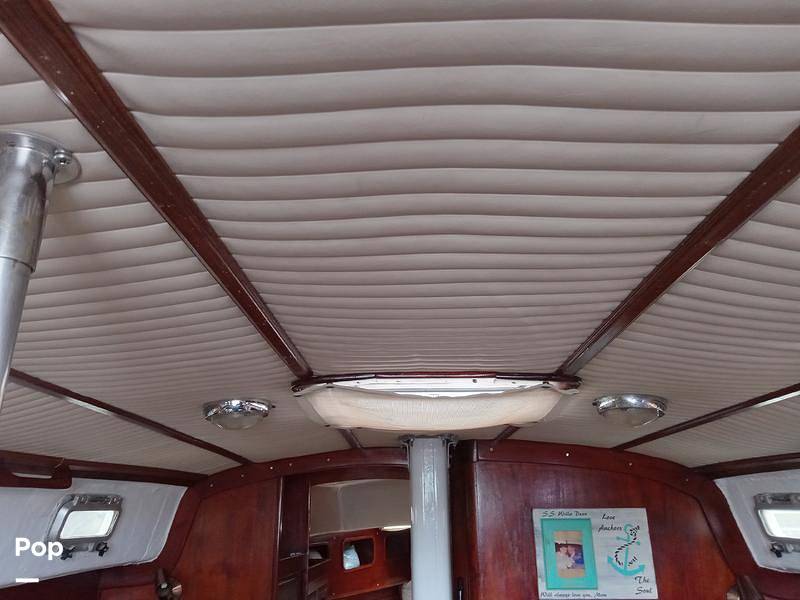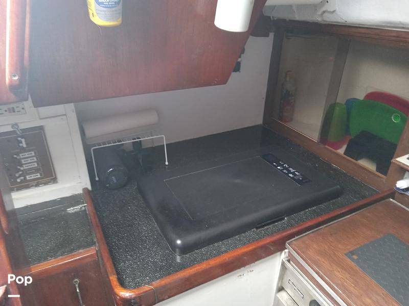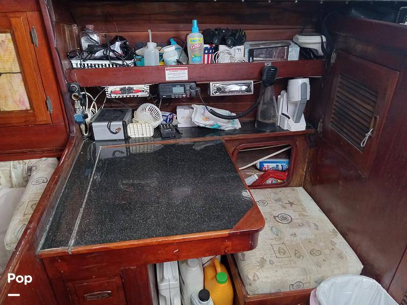 The boat is powered by a Universal M40 engine and runs well, according to the owner. The rigging runs aft to the cockpit for ease of sailing.