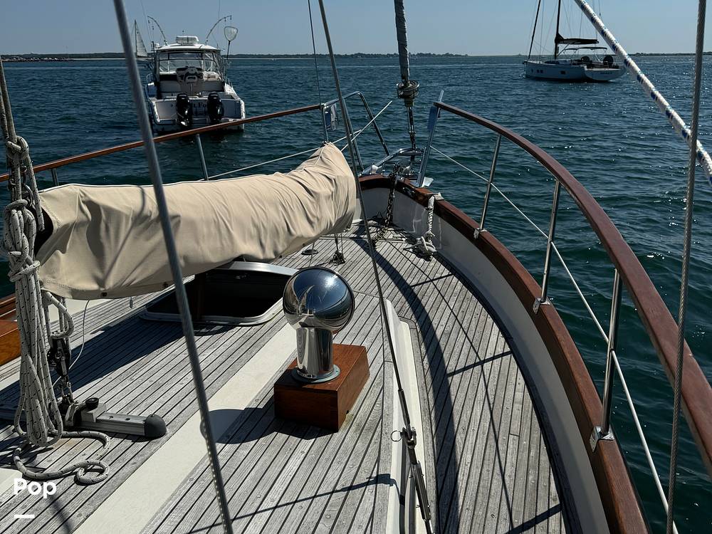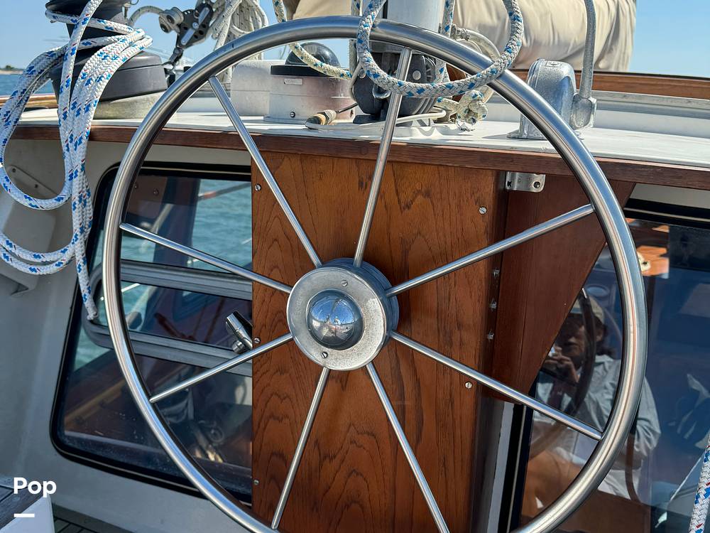 This boat has been extensively upgraded by the current owner who is a furniture maker. She has newer dorade boxes, a custom table in the pilothouse, Corian countertops and stainless steel sinks throughout.