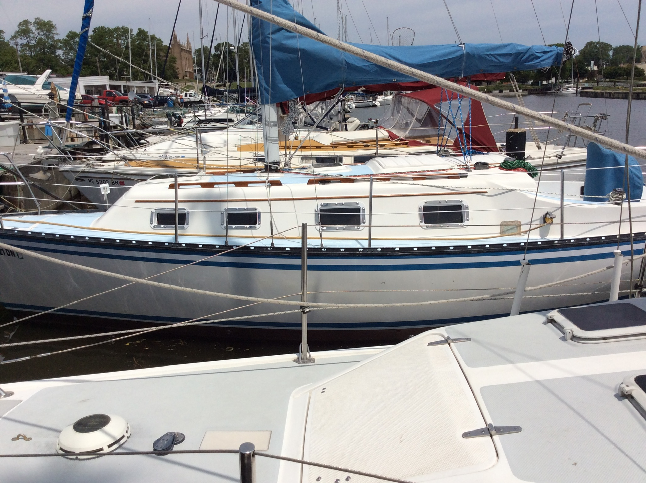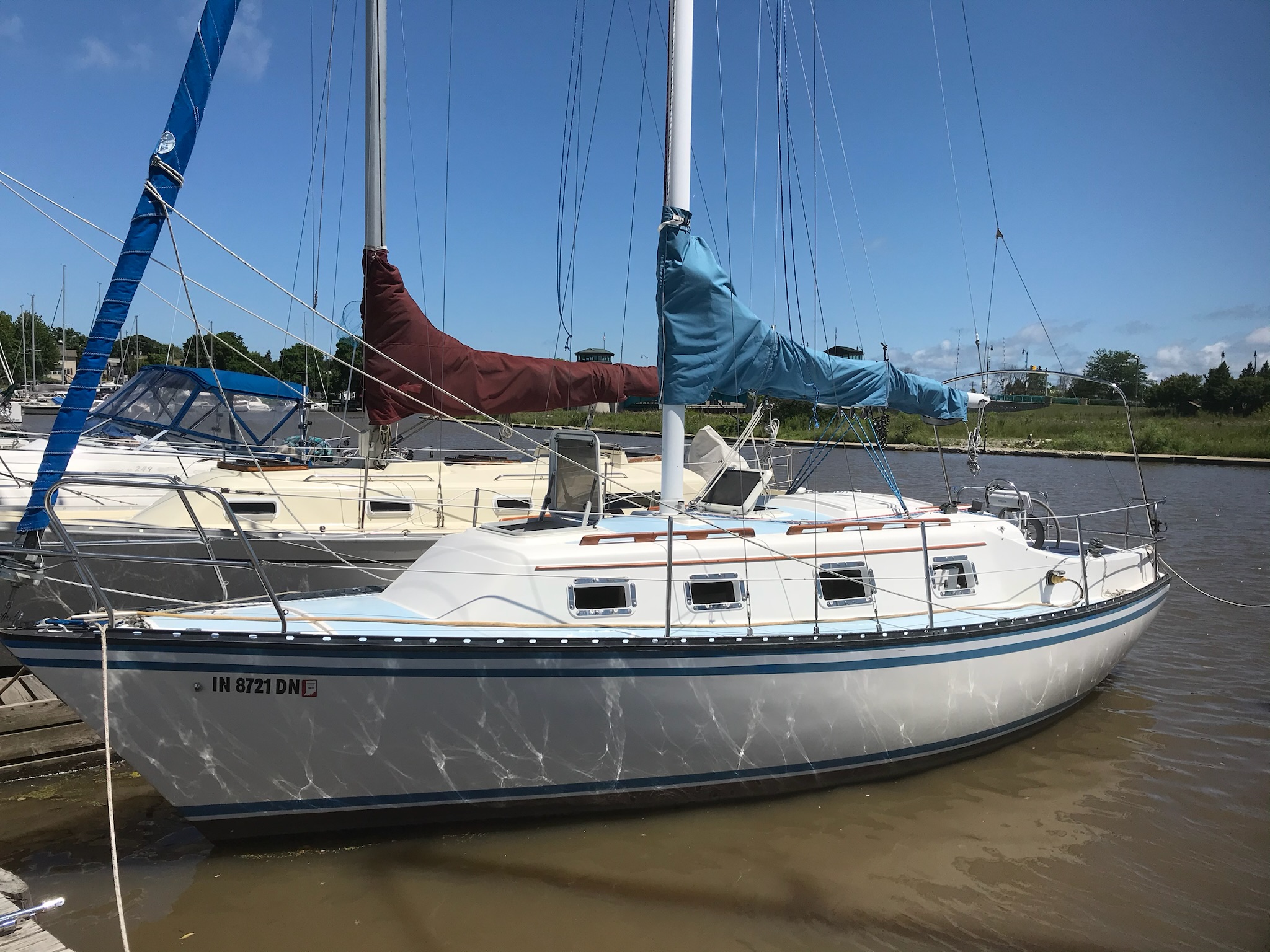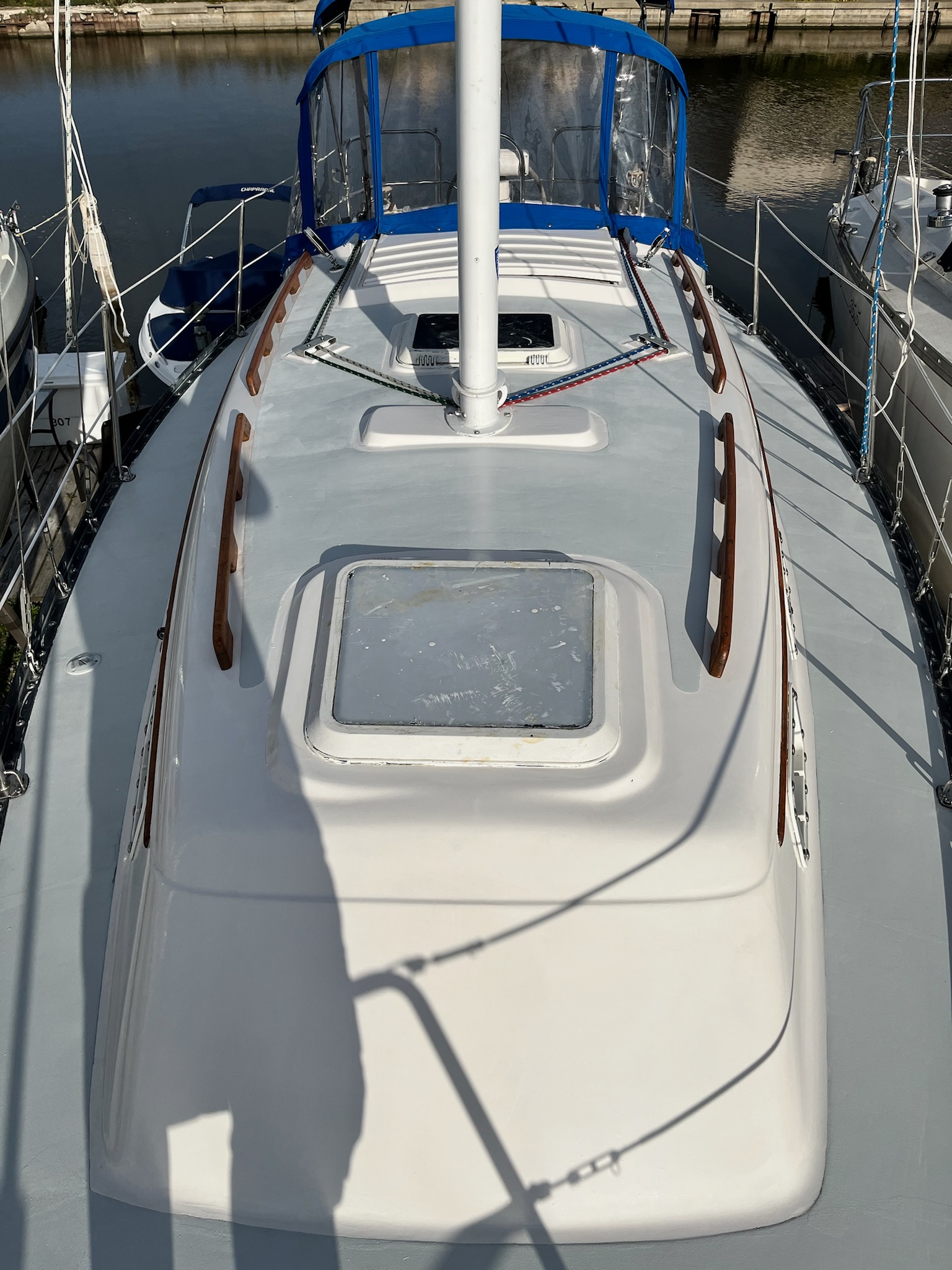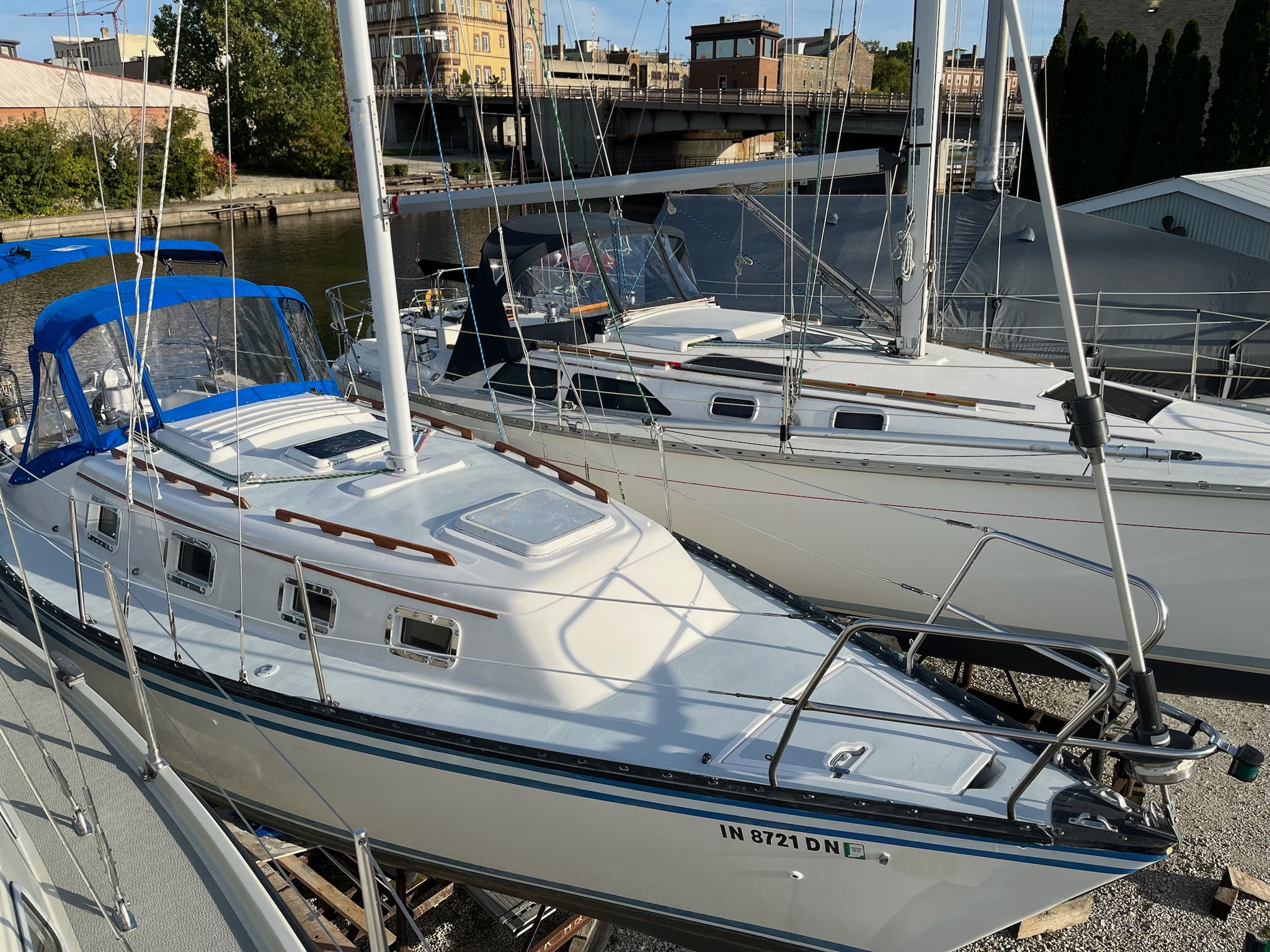 •Extensive electrical repair and replacement of the wiring throughout, including new LED lighting from the mast/spreaders to below deck. (Mast stripped, painted, and rewired at same time.)