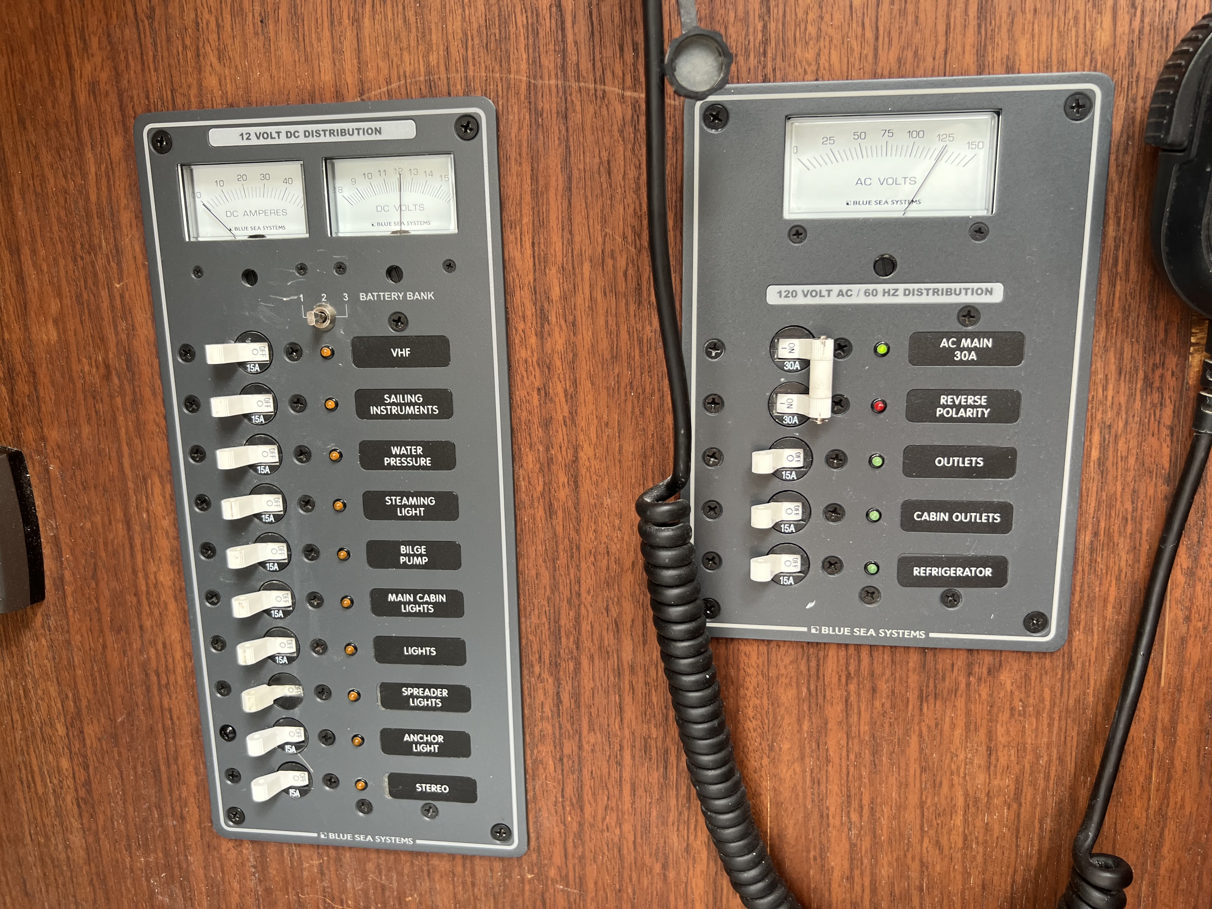 •Blue Sea A/C and D/C breaker panels.