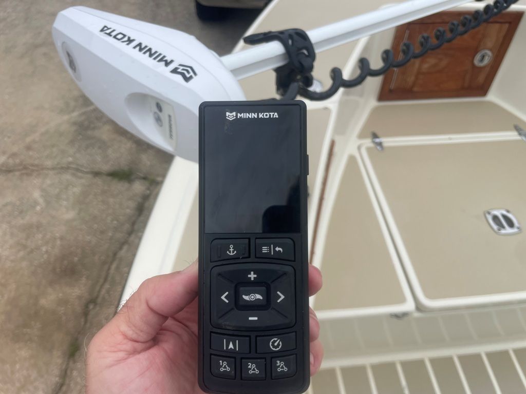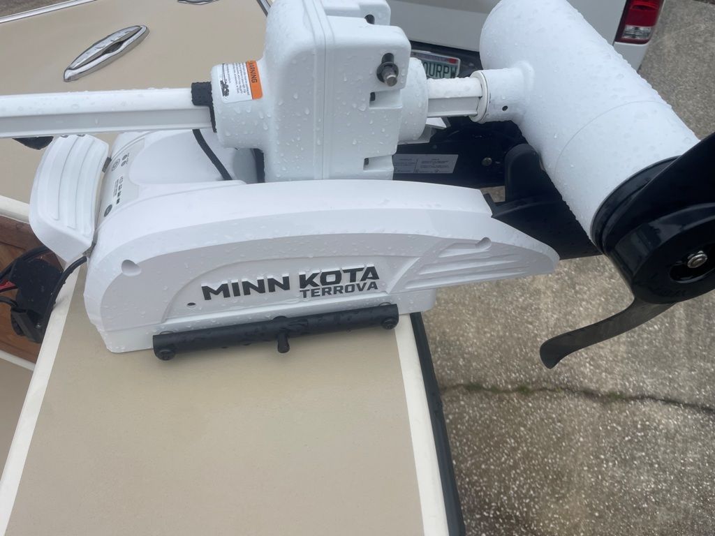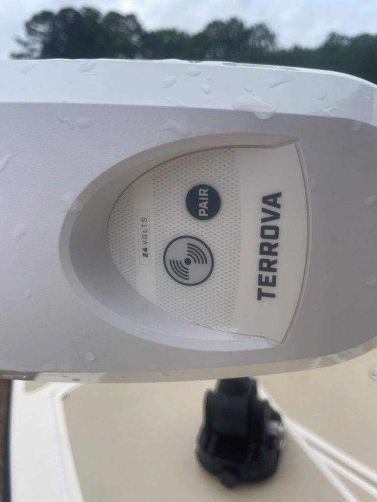 2024 MinnKota Terrova 24 V trolling motor with GPS spot lock, drift mode (80 lb thrust), wireless remote, 2 lead acid batteries, onboard 2 bank battery charger