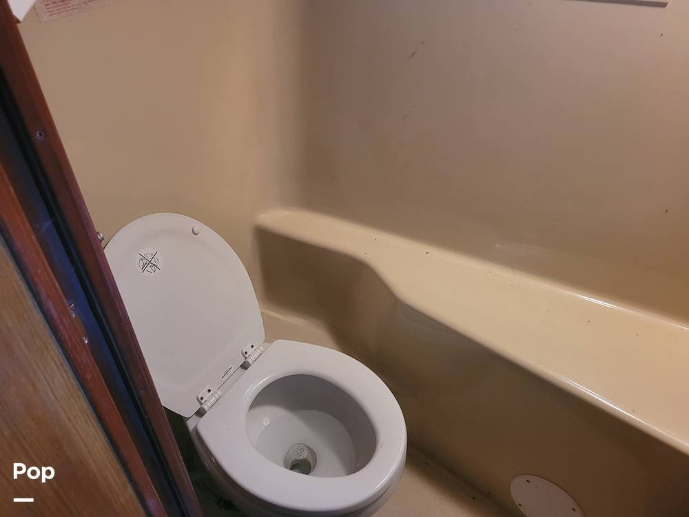 This Sea Ray boasts a spacious salon with a convertible dinette, a fully equipped galley with refrigerator, stove, and microwave, and reverse-cycle AC/heat for year-round comfort.