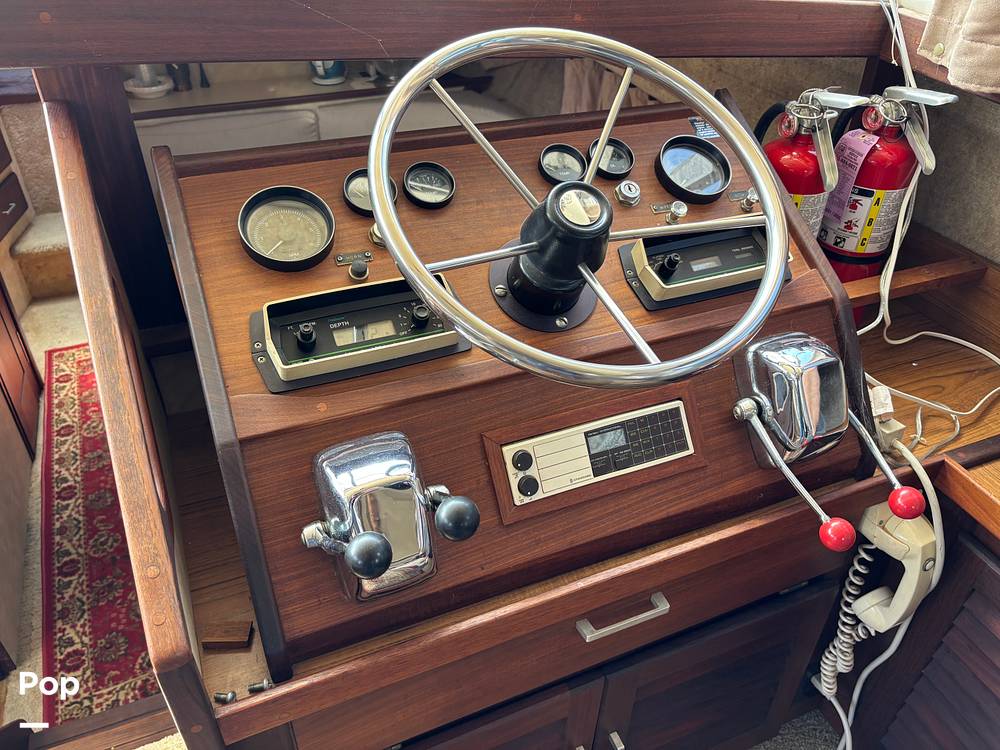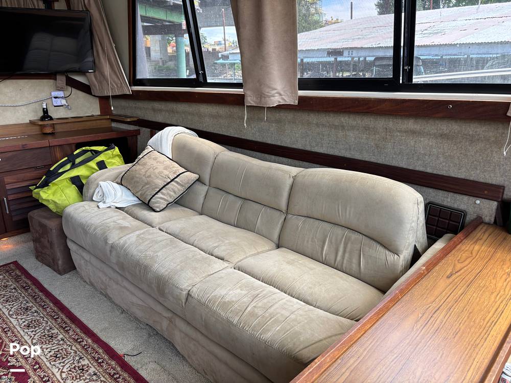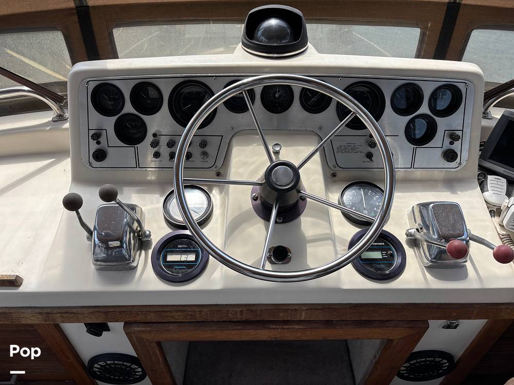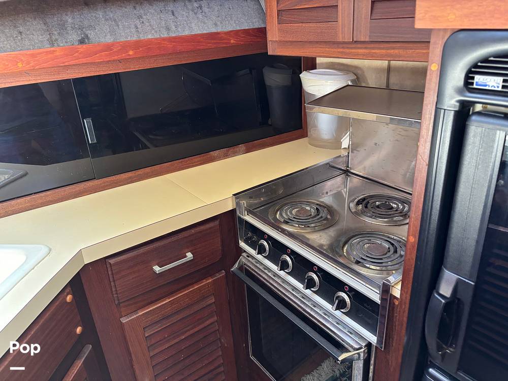 This 1983 Silverton Aft Cabin 40 is built for comfortable cruising and extended stays. Powered by twin Crusader 350 hp engines, it delivers steady performance and reliable handling. The flybridge and upper helm station offer clear views, while the swim platform and transom door provide easy access to the water.