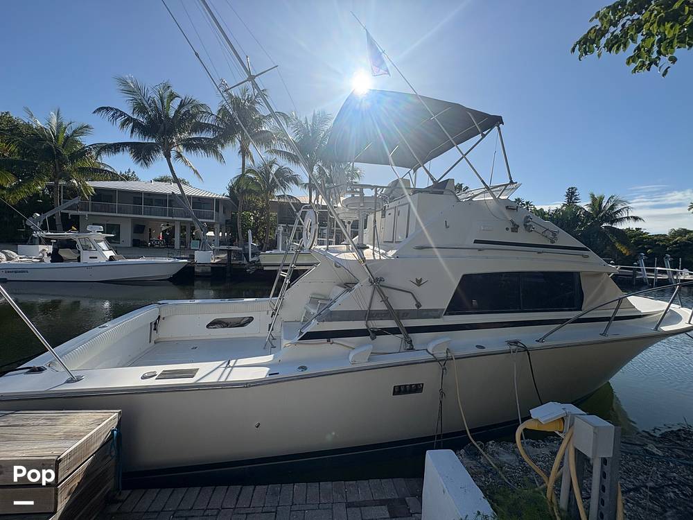 This 1984 Bertram 33 Sportfisherman has a deep-V hull that delivers a solid, comfortable ride offshore and a wide beam that feels stable both underway and at the dock.