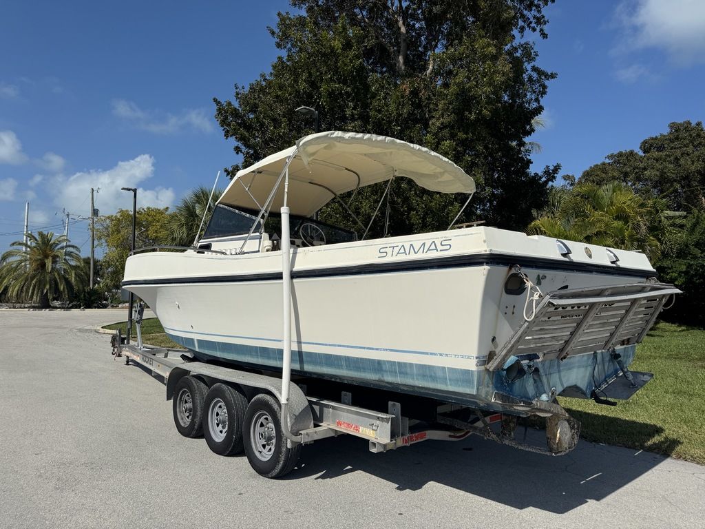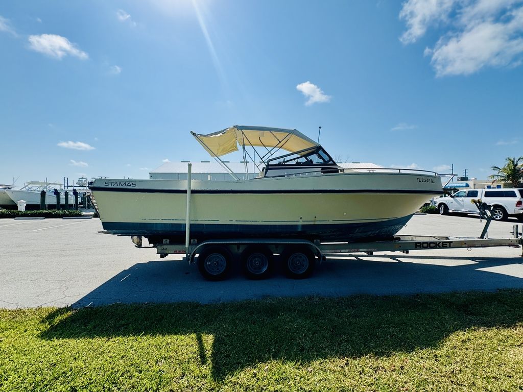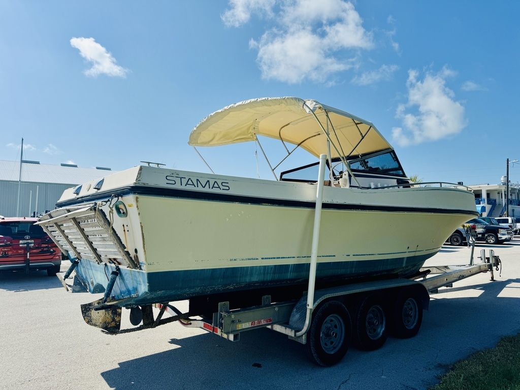 At an overall length of approximately 26’, the hull proportions deliver a stable, confidence-inspiring ride in a range of conditions. Stamas models of this era were known for their deep-V hull designs, wide flare forward, and solid fiberglass construction — engineered for durability and a smooth offshore performance. Whether you’re heading offshore for a day of sportfishing, cruising the coastline with family, or anchoring up at the sandbar, this 1984 Stamas provides versatility, comfort, and classic style.