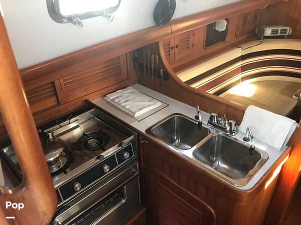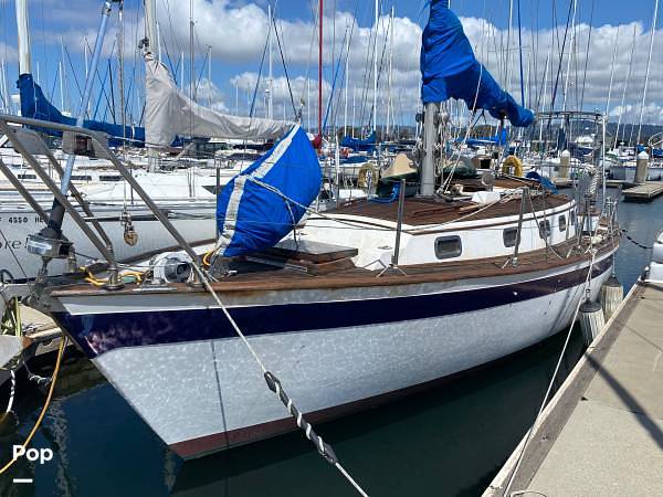 This 1984 Union 32 sloop, features roller furling and comes with an extra jib and genoa. The seller indicates that the Volvo Penta diesel engine runs well.