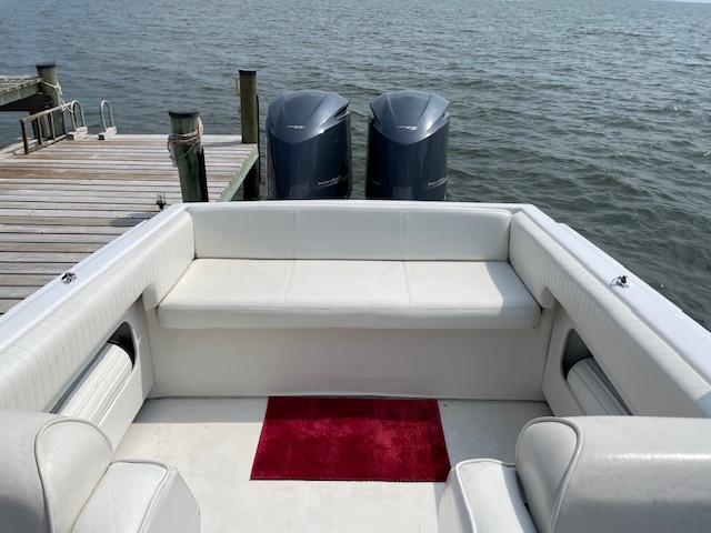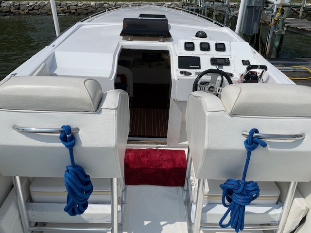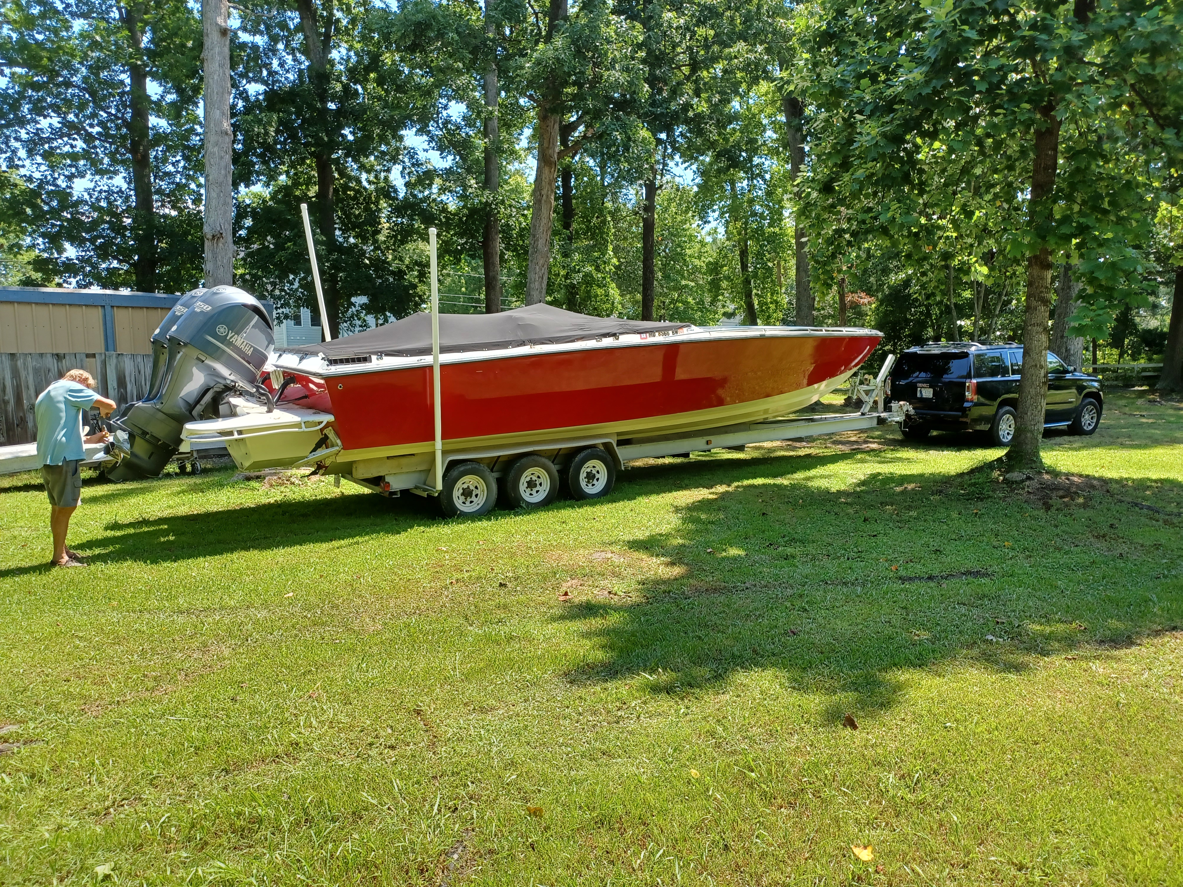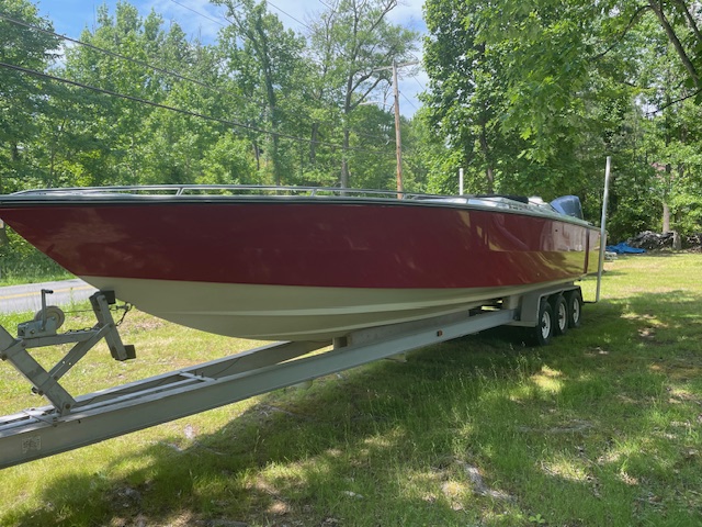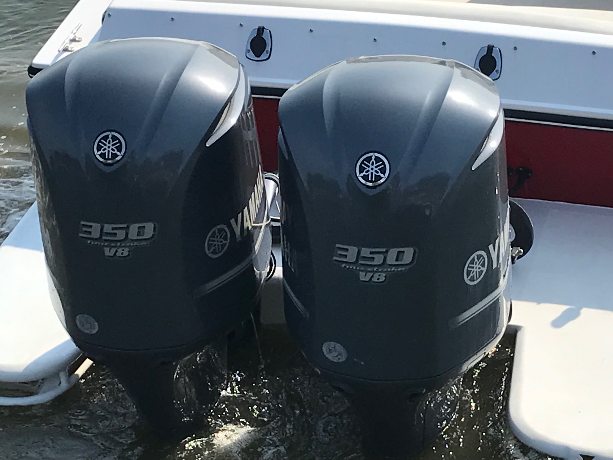 Rare 34 Raider - extended hull - 5' aircraft aluminum motor mount /swim platform - twin Yamaha 350s - 208 hours - fish rigged - expanded cockpit - custom side panels/compartments - tri axle aluminum trailer - too many features to list -