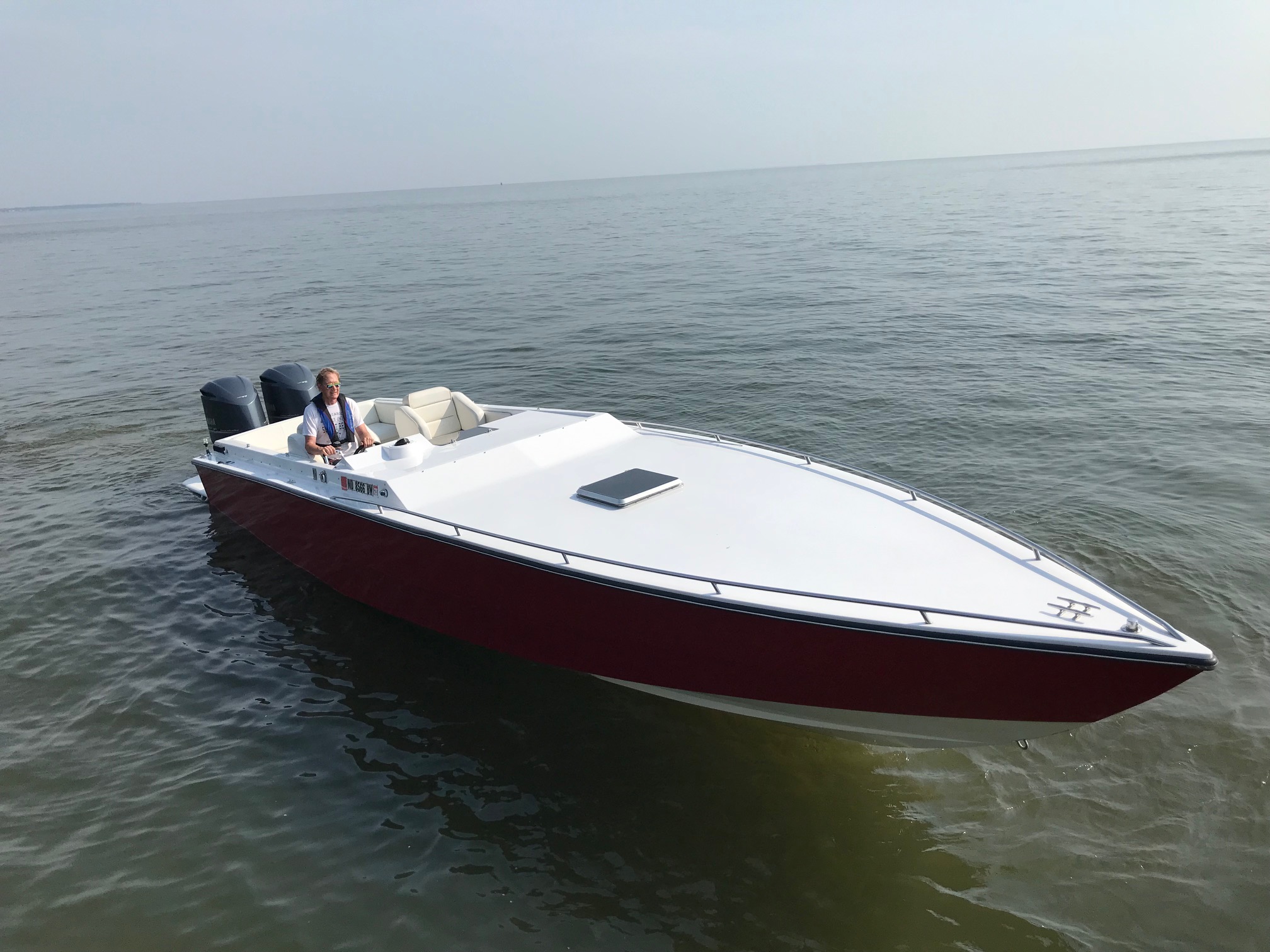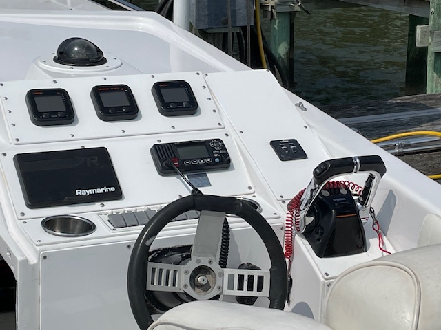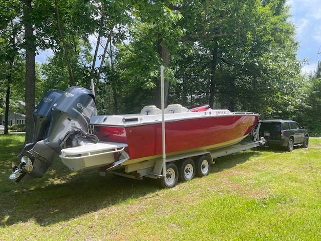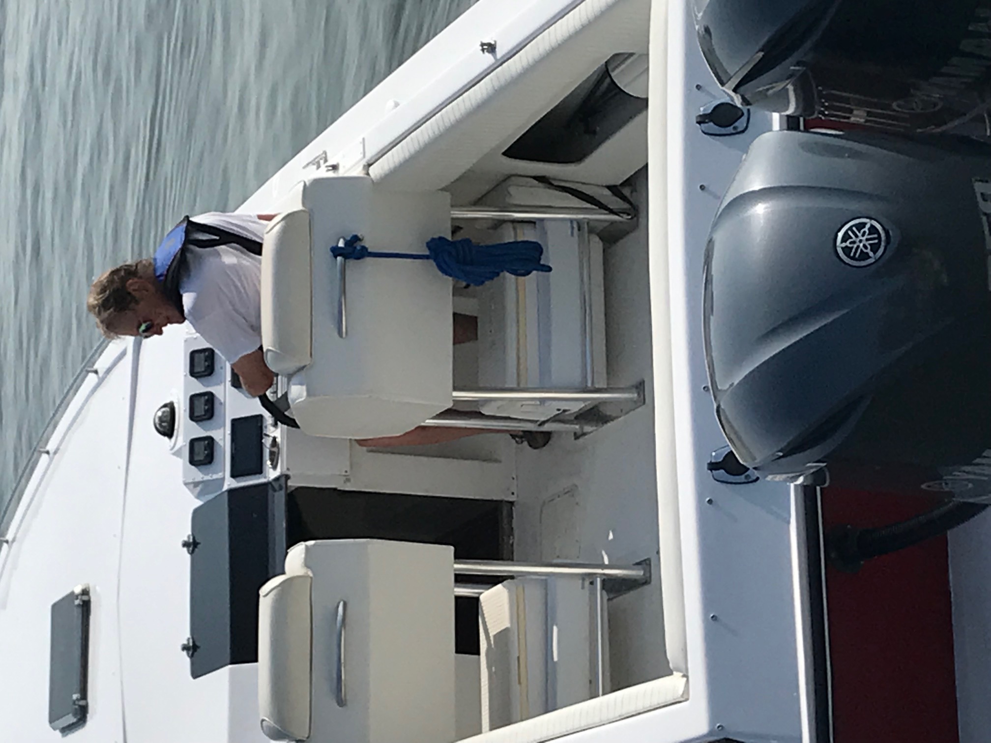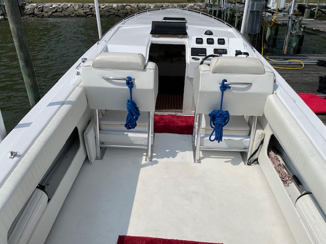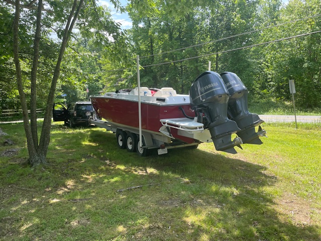 Rare 34 Raider - extended hull - 5' aircraft aluminum motor mount /swim platform - twin Yamaha 350s - 208 hours - fish rigged - expanded cockpit - custom side panels/compartments - tri axle aluminum trailer - too many features to list -
