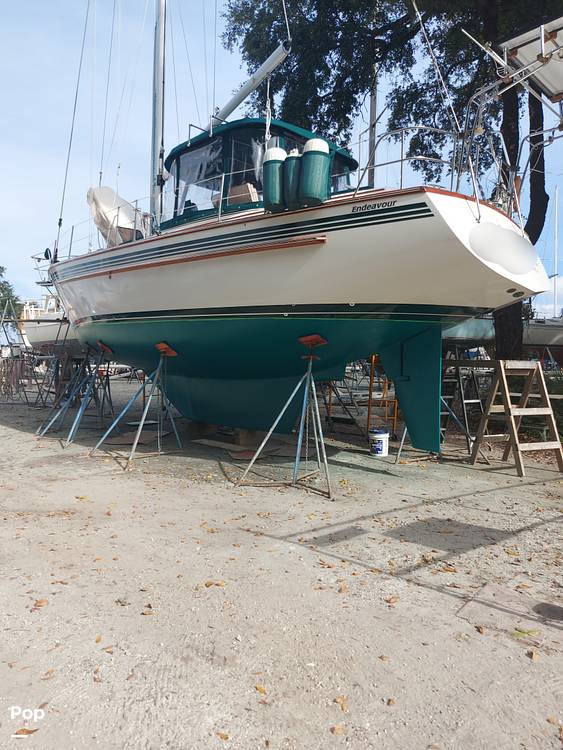 This 1985 center cockpit Endeavour is a well-equipped and upgraded example of the America's Cup designer, Johan Valentijn's, center cockpit, offshore cruiser. Features include teak rubbing strakes with stainless steel trim, bow sprint with pulpit rail, teak chain plate covers, ice maker, rear opening ports on aft cabin.