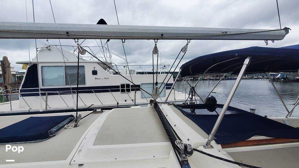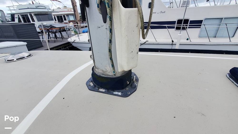 The bow has an anchor locker with anchor and a spare anchor is included. There are cockpit cushions, a dodger, bimini, and full canvas cockpit enclosure.