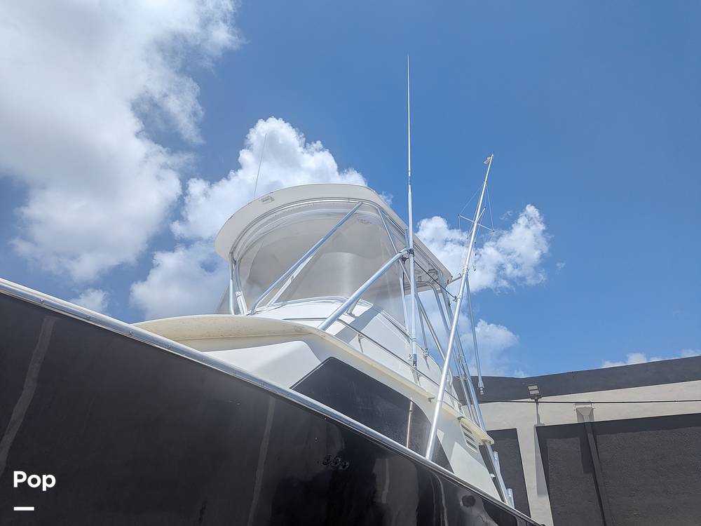 Beautiful stainless steel around the flybridge hardtop and 3 tier outriggers enclose the helm. On the stern is the classic teak deck that is in great shape with a lovely teak work table/rod holder. Inside has an updated refrigerator and lots of space for seating and storage.