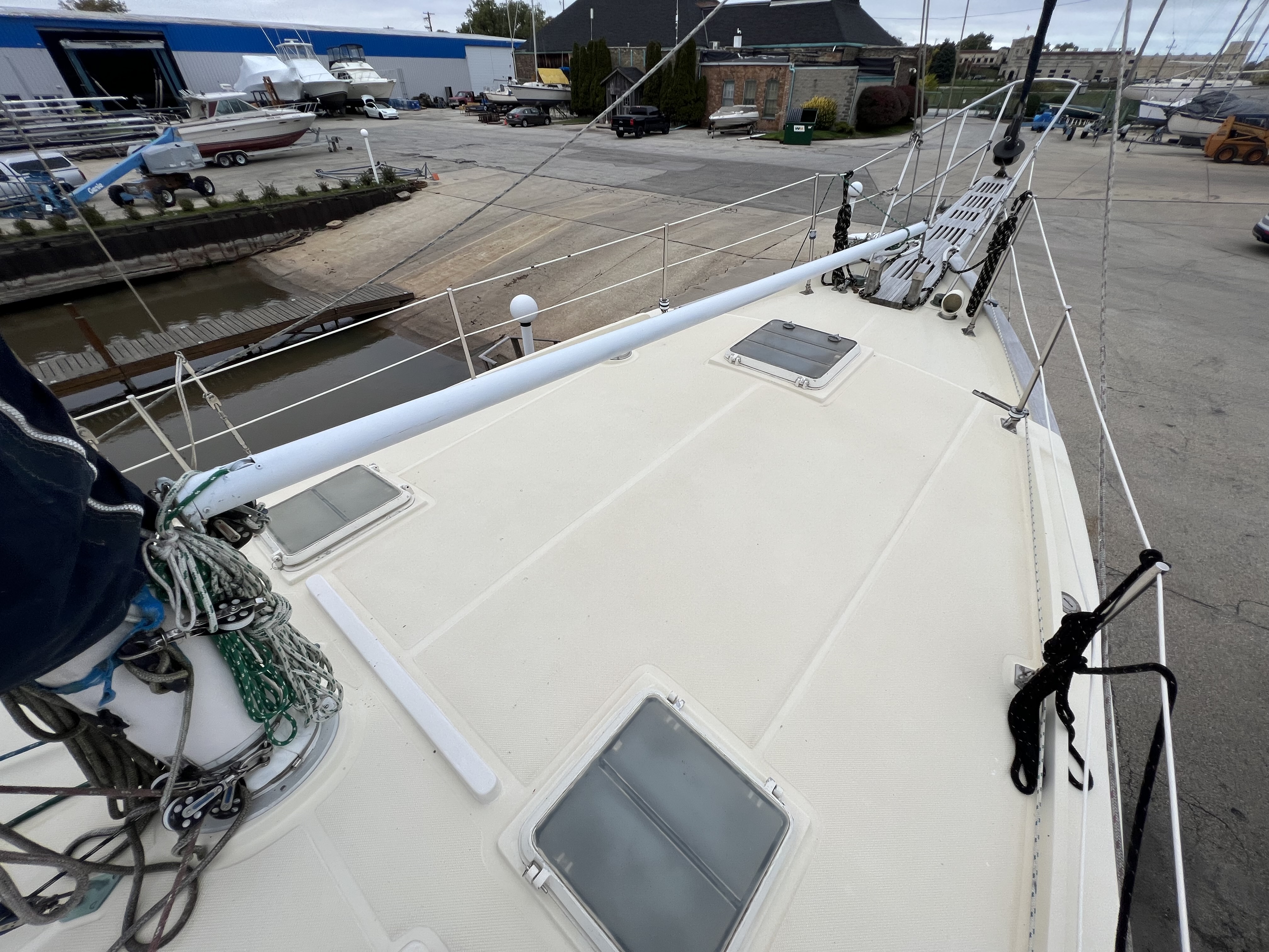 • Keel stepped, single spreader, painted aluminum mast and boom