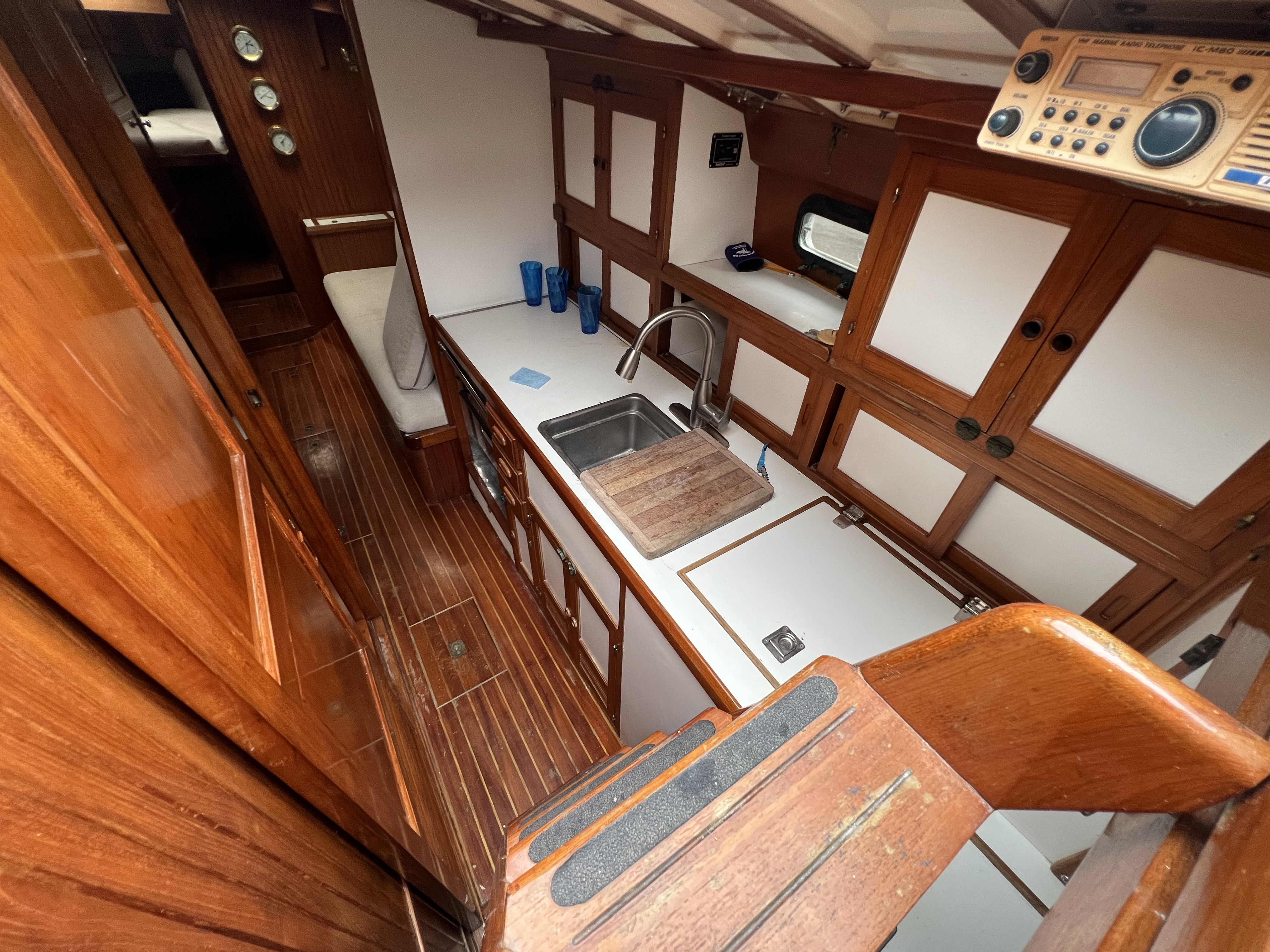 •The forward facing, fold down navigation station is across from the galley in the mater stateroom.