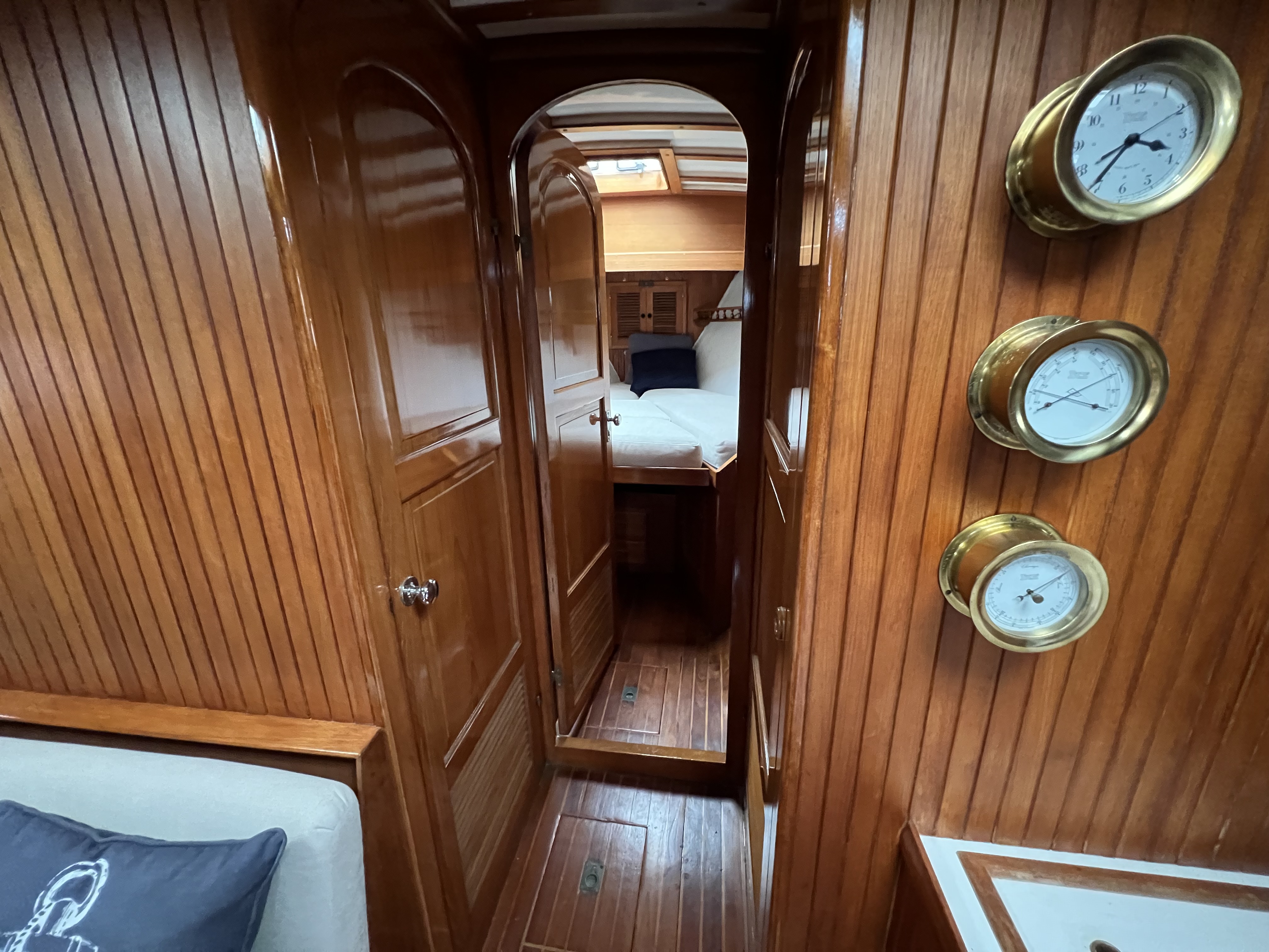 •The master stateroom is aft to port with a comfortable double hanging locker, large mirror, counter with sink and cabinetry.
