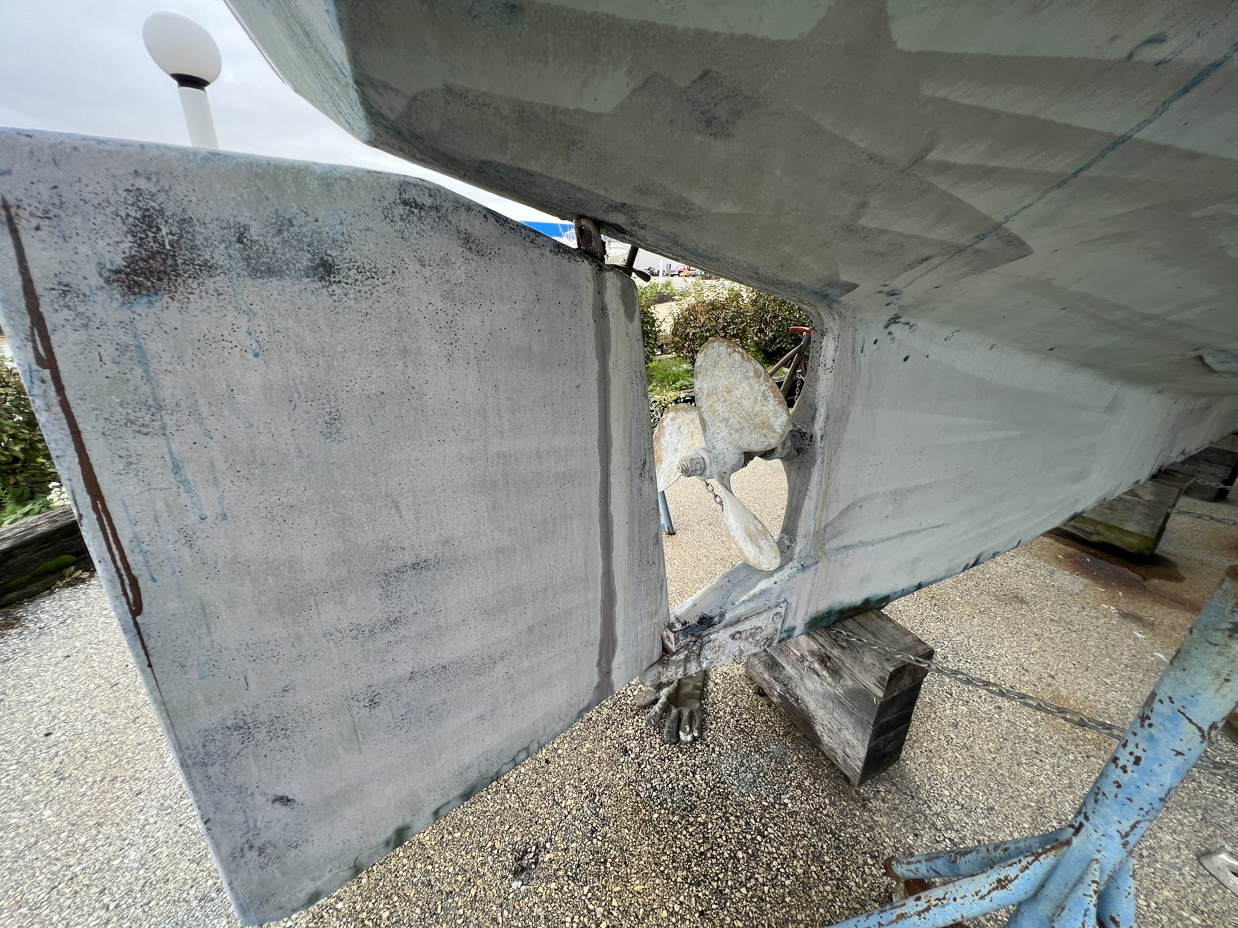 • Molded keel design with dual centerboards, forward of molded fiberglass & aft of stainless steel raw water strainer