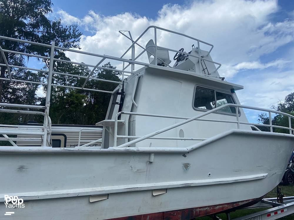 The Munson 32 has had some updates over the years, such as a refit with wiring, electronics, anchor locker stowage, fold-down bench seating with SCUBA tank racks, cabin storage cabinets, and an aft platform dive ladder. The bottom and topside paint has been applied, and a preservative epoxy coating system has been applied to the bilge areas.