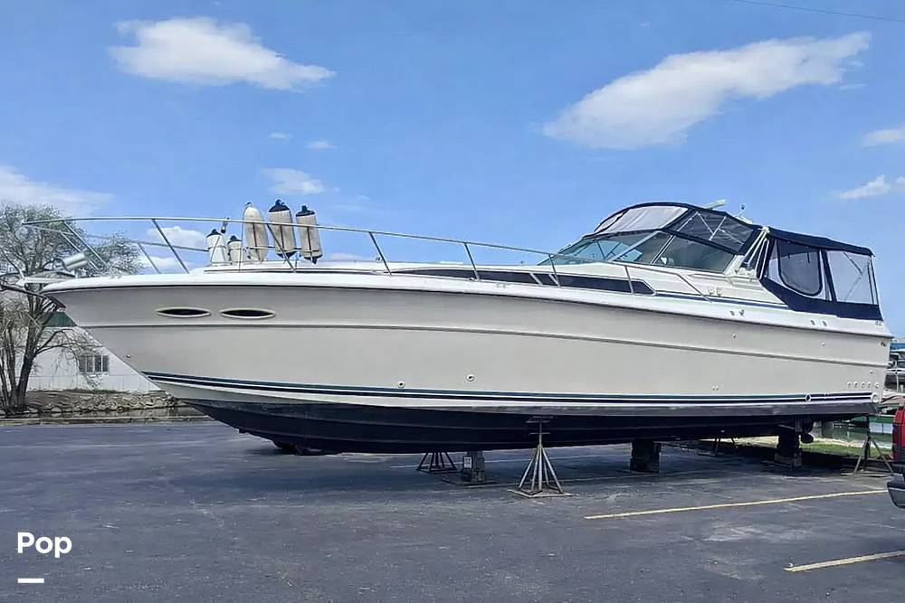 Spacious Sea Ray Express 390 with full camper canvas ready for Summer adventures!