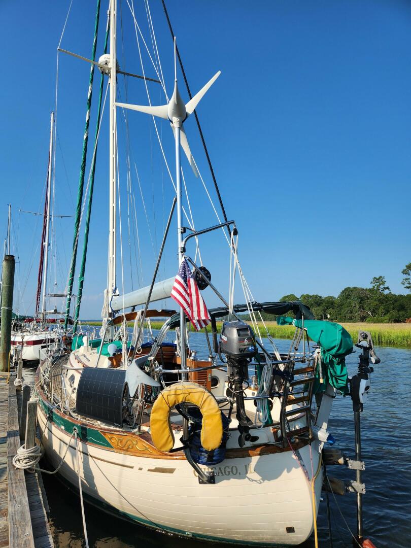 This 1986 Tashiba 31 was in fresh water on Lake Michigan before the current owner bought the boat and worked on preparing her for an ocean crossing. She was kept on land in Florida and was then sailed to Georgia in 2022 where she’s now at a marina in Townsend. Plans have changed, making her available for a new owner to sail far and wide in.Recognized designer Robert Perry penciled the Tashiba and Ta Shing Yacht Building Company built this full keel, heavy displacement, canoe stern, sea kindly ocean cruiser. While designed and equipped for blue water sailing, she remains easy to single-hand and is a pleasure to just enjoy and coastal cruise on.Highlights:WindvaneWatermaker3 power winchesIn-boom furling mainMax-pro feathering propDripless ShaftWind, Solar and portable generator2 Dinghies (West Marine and Mercury inflatable) and 2 outboards (1 electric 3HP and 1 6HP Tohatsu) included in the saleCopper coat’s 10 year antifouling was applied May 2024 ElectronicsGarmin ChartplotterRadar (2022)VHF and AIS (2022)forward-scanning sonar (2022)SSB radio c/w Antenna, KSS Ground (2023)Mechanical/ElectricalYanmar 3GM30F, 27HP 3-cylinder diesel engine (h unknown, assumed to be low since it was a lake boat and the current owner only added about 100h since ownership)New SS Yanmar exhaust elbow installed (2024)Raw water overheating alarm (2024)Dripless shaft seal (2024)New Rolls/Surrette S12-1136AGM-RE Batteries in port stern lazarette 2 house, 1 start (2023)New windlass battery (2025)2 x Light leaf 110-Watt each Solar panel (2023) Inverter which is able to power the icemaker, SAMLEX 2000 Pure Sine Wave 2000 Watt (2022) Battery charger, Powermania Turbo M440 Quad 12V DC 40 ampHonda 2000 gasoline generatorHull/Deck/OtherAll hoses replaced and through hulls checked (2022)New Max-Prop feathering 3 blade propeller (2024)Rutland 1200, 3 blade wind generator with controller (2022)New Hydro-vane self-steering (2022)Rainman desalination reverse osmosis system/WatermakerAVON life raft (needs recertification)Charcoal BBQ (2023)Diesel heater and a wood burning heaterAir conditioning unit c/w Cool Boat accessory (2024)Water heaterNew Xylem bilge pump 2021Foot and electric pump for freshwater (foot pump galley sink currently now working)EpirbLee cloths port setteeDrogue, ditch bag, rain catching device, hosesSpare ropes, boarding ladder, lifejackets, lead line, solar shower, oil pump, Power cordsSails and RiggingSchaefer in-boom furling main (4 battens)Shaefer furling for the genoa and staysail replaced (2022)New Parasailor spinnaker. Never used. (2023)2 Headsails age of sails unknown but appear in very good condition1 mainsail age of mainsail unknown but appears in very good condition3 Power winchesOther winches Standing rigging partially replaced: Mainstays upgraded from ¼” to 5/16” secondary stays replaced with ¼” SS wire (2022)Ground TackleMaxwell windlassGalv. Rocna 275ft chain and 275ft rode (2023)Galv. Bruce anchor (2023) Stainless steel Ultra anchor GalleyIcebox for refrigerationPortable icemakerTwo-burner propane stove (oven inoperable)Omnia stove top ovenTwo propane tanks in self-venting starboard stern lazaretteDouble sinksFoot pump galley sink (currently not working)Additional units6HP Tohatsu outboard (Reconditioned 2023)E-Propulsion 3 HP Electric outboard (2022)West Marine inflatable dinghy/oarsMercury inflatable dinghy/oars (missing seat)AccommodationSalon with drop leaf table and 2 saloon berthsV-berthNavigation stationWet head with new composting Air head (2022)Length Overall: 31 ftBeam: 10 ft 6 inDraft: 5ftBridge Clearance: 53ftHull speed: 6.5ktsHeadroom: 6’3”Ballast: 4705 lbDisplacement: 13790 lbFuel: (38 gal, steel)Fresh Water: (90 gal in two stainless steel tanks)Holding: Now composting head, old 30 gal holding tank removed