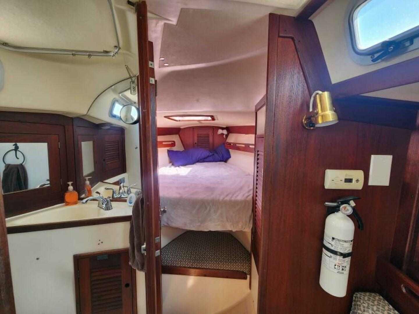 Sea Panda, just got her bottom painted (Oct 2025) and had some other general maintenance items taken care of while on the hard. She is now back in the water. This 1986 Tartan 34-2, has been well taken care off and upgraded, She features all new standing rigging, a LiPO4 house battery, a good sail inventory that includes a new mainsail to only name a few highlights. The boat can easily be single-handed. She has made two trips to the Bahamas in the last three years and is an active participant in the local sailing club, winning New Boat of the Year 2022 and Winner Class B 2023. Designed to be a comfortable performance cruiser and racer, the Tartan 34-2, a Sparkman & Stevens creation, is a high-quality craft known for its superior built and solid reputation. Highlights:New Antifoul (Oct 2025)Complete Buff and Wax (4/2025)All new standing rigging (Sept 2022) Lithium LiPO4 house battery (April 2024)New Precision Sails Dacron mainsail (2023)Good sail inventory with 1 mainsail, 1 mainsail spare, 1 genoa, 1 storm jib and two spinnakersVesper Watchmate class B AIS send/receive wifi network enabled (June 2023)New 17 inch 3 blade fixed bronze prop (Oct 2021)Deck repainted by previous ownerIncluded in the sale is the West Marine 9 ft dinghy (new in 2021) and the 2022 4HP Yamaha 2-stroke outboardMechanical:27 HP Yanmar, hours unknown (last engine service 3/2025 new filters, fluids, hoses etc.).Engine has new motor mounts, new fuel lines, and a new raw water pumpConventional packing gland and carbon packing, packing gland hose and packing replaced (Feb 2021)New belts in 2024Replaced all 4 motor mounts with stainless mounts and aligned shaft (Jan 2023)Replaced raw water pump (July 2023)Sails & Rigging / Canvas:Doyle 120 jib-cut genoaNorth Sails #3 storm jibNew Precision Sails dacron conventional main sail with 2 reef points (2023)Spare conventional mainRed, white, blue, asymmetrical spinnaker Orange and Black, symmetrical spinnaker Carbon spinnaker poleJohn Ramsey Rigging replaced all standing rigging, chain plates, mast wiring, rebuilt masthead and cranes (Sept 2022)Chain plates re-bedded (4/2025)Hydraulic Backstay rebuilt Summer 2023Sunbrella Navy bimini replaced Fall 2023Electronics / Electrical:Vesper Marine AIS with wifi networkGarmin chartplotterRaymarine ST60 series wind, depth, and speed instruments mounted above companionwayStandard Horizon marine VHF with AIS receiveLightning protection for VHF antenna system180 Ah Paoweric Lithium battery new 2024AGM starter battery (Oct 2022)200W solar array and Renogy 30A battery charging system. [The boat draws 90Ah in 24 hours in normal sailing conditions and is fully charged by early afternoon most days.]3000W Renogy Pure Sine Wave inverterLED lighting throughoutSeveral USB portsShore Power battery charger and 30A cableGalley:Eno 2 burner stoveCold Machine refrigerator new in 2020Available foot pump for galley sinkNew Kuuma 6 gallon Hot water heater (July 2023)Plumbing:Jabsco manual head and all new blackwater system (replaced in the last 4 years)New rotomolded 15 gallon blackwater tank (Oct. 2021)Jabsco macerator pump for overboard discharge where allowableNew faucet in the head sink (July 2024)Ground Tackle:20kg (44 lbs) Rocna anchor, 50’ chain, 150’ rodeDanforth Aluminum backup anchor, 200’ rodeDinghy anchor with rodeAccommodations:Quarter double berth portForward cabin v-berthV-berth with custom memory foam mattress Wet headCockpit cushions foam replaced Nov 2023.Drop down table in salon cabin for entertainingWater heater works with engine heat or 120v powerTen opening portlights, 3 opening hatches most with screensThree ventilation fansSun shades for hatchesTankage:Fuel: 23 GallonsWater: 57 GallonsHolding: 15 gallonsOther: Safety equipment – Jack lines, harness/life jackets with strobes, tethers, throw cushion, flares, fire extinguishers, air horn, lifesling MOB deviceExterior teak will be finished with Cetol light and Cetol glossStainless cleaned and protected with FlitzAdditional units:West Marine roll up 9 ft dinghy (new in 2021)2022 4HP Yamaha 2-stroke outboardLength 34’Beam 11’Draft 2.0 meters, 6’7” Fin keelBridge clearance 50 feet