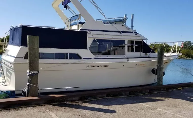 Freshwater / Great Lakes boat since new, this vessel features Twin Crusader 350, 350-hp Gas Engines with only 650 original hours. Notable features include but are not limited to the following: Air-Conditioning & Heat replaced in 2020, (2) Heads (Vacu flush; Note Stall-Shower in Aft / Master Head), New Depth Sounder, Westerbeke 6.5-kw Generator, Bimini Top over bridge, and MUCH more!