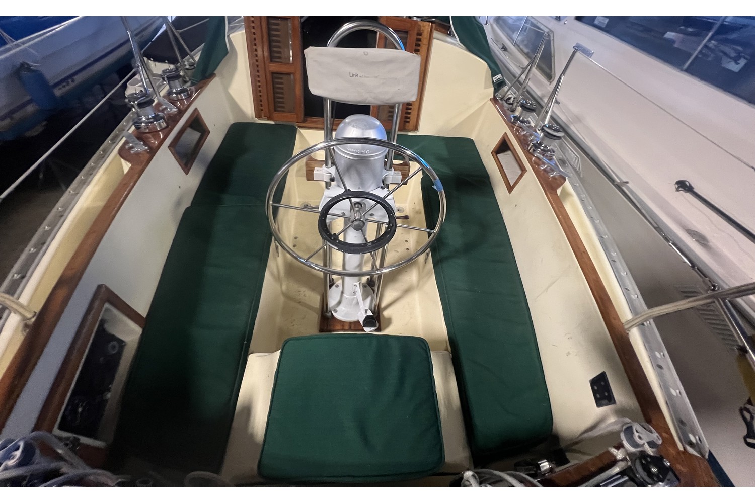 - Green Sunbrella cockpit cushions