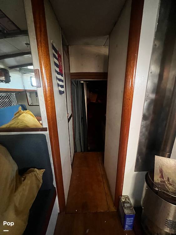 Check out this 1987 William Ferro custom schooner. Amazing construction. Powered by a 40 HP Westerbeke diesel engine. With two 50 gallon tanks, you'll have good range while cruising. The three-cabin layout makes for a great liveaboard. The captain's quarters are roomy, with plenty of storage and a nice refinished closet. The mid cabin is a single bunk and the front cabin is a single berth as well.