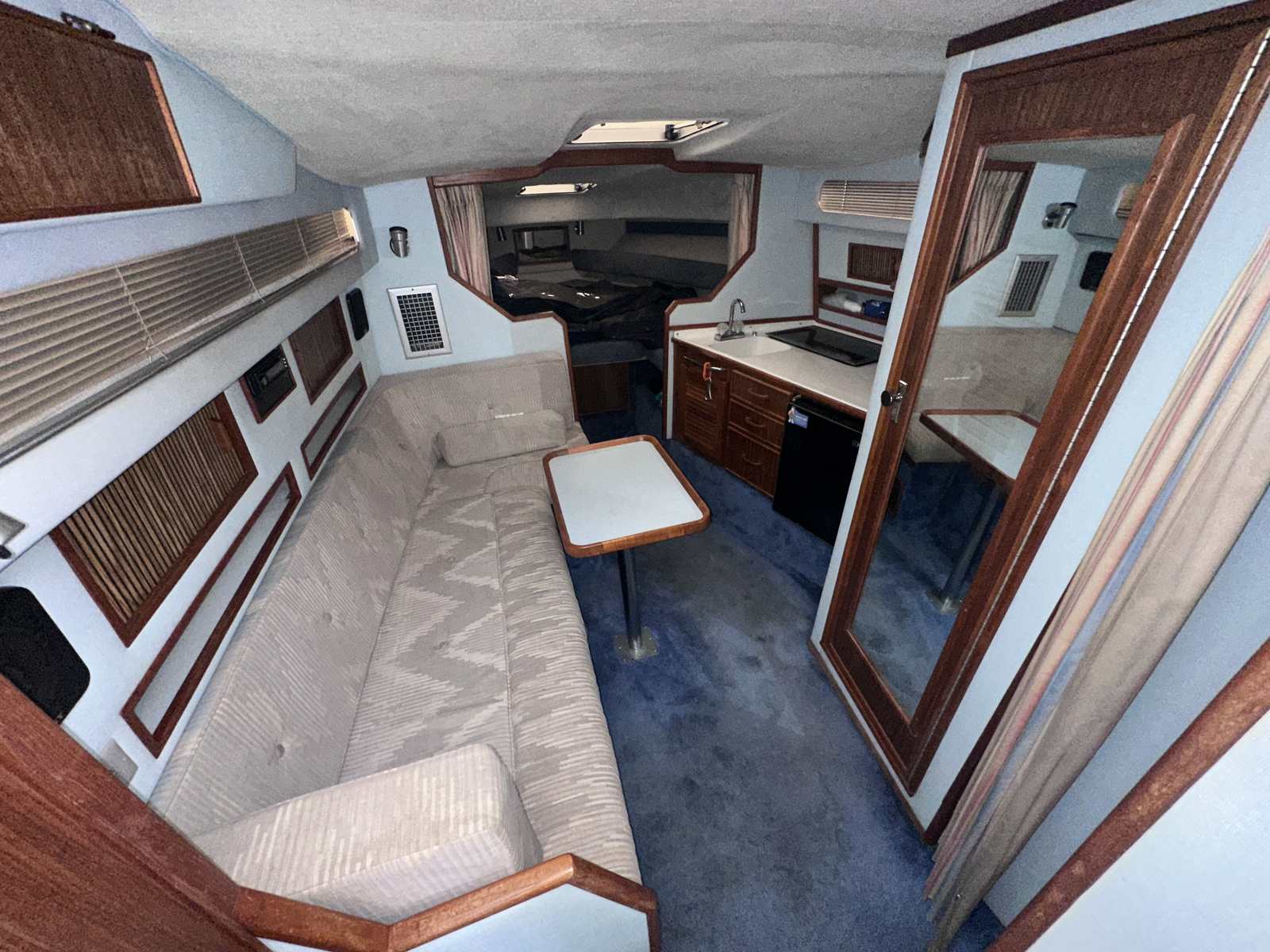 This freshwater 1987 Sea Ray 270 Sundancer is a classic mid-sized express cruiser known for its solid construction, comfortable cabin, and reliable performance. Measuring 27 feet in length with a 10-foot beam, it offers a spacious cockpit, a well-appointed cabin with sleeping accommodations for four to six, a compact galley, and an enclosed head. Powered by twin 4.3L MerCruiser engines,it delivers a smooth and efficient ride. Ideal for weekend cruising and overnight stays, the 270 Sundancer remains a popular choice among boating enthusiasts. Highlights include A/C in the cabin, Bimini Top with Enclosure, GPS, Stereo and more! She is currently wrapped on land with door access for viewing.