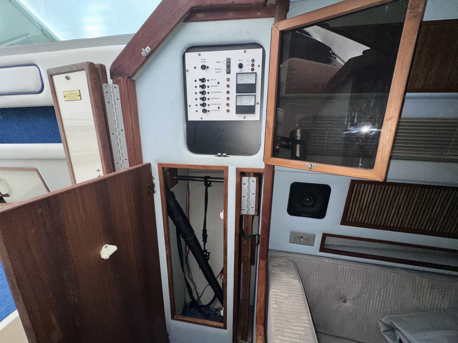 This freshwater 1987 Sea Ray 270 Sundancer is a classic mid-sized express cruiser known for its solid construction, comfortable cabin, and reliable performance. Measuring 27 feet in length with a 10-foot beam, it offers a spacious cockpit, a well-appointed cabin with sleeping accommodations for four to six, a compact galley, and an enclosed head. Powered by twin 4.3L MerCruiser engines,it delivers a smooth and efficient ride. Ideal for weekend cruising and overnight stays, the 270 Sundancer remains a popular choice among boating enthusiasts. Highlights include A/C in the cabin, Bimini Top with Enclosure, GPS, Stereo and more! She is currently wrapped on land with door access for viewing.