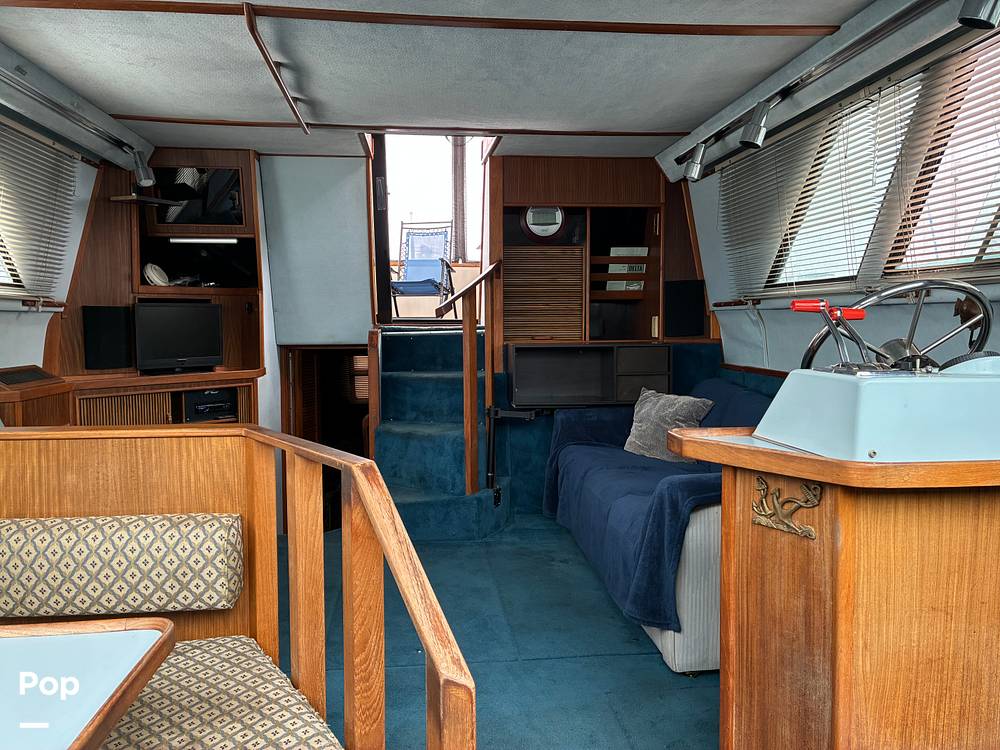 Up top you will find a fully enclosed flybridge with second helm with radar and a new Lowrance LMS-522 chartplotter. A fully enclosed aft deck is plenty of room to entertain guests or simply enjoy the views. The possibilities are endless.