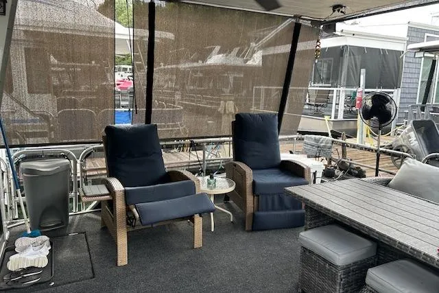 Outdoor sectional seating and recliners on bow