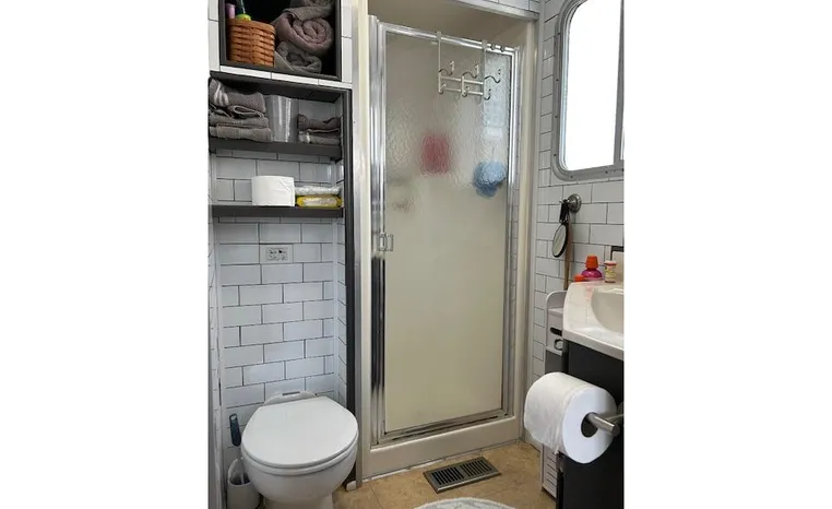 unit professionally vented outside of boat. Window tint and opague film applied to bath and bedroom